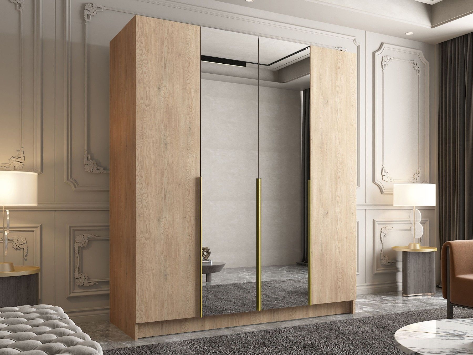 Kleiderschrank Minello II Garderobenschrank Spiegel Kleiderstange Drehtürenschrank