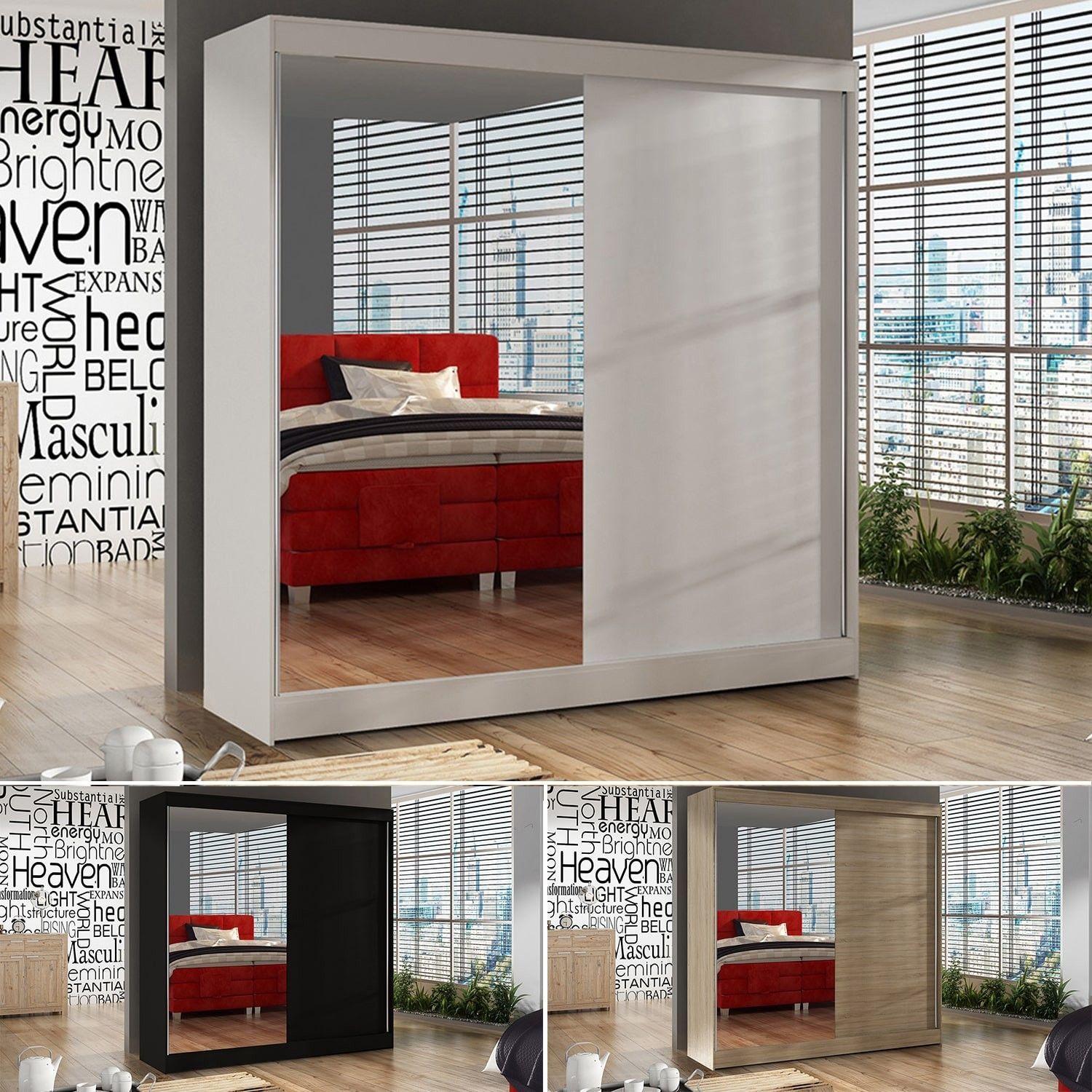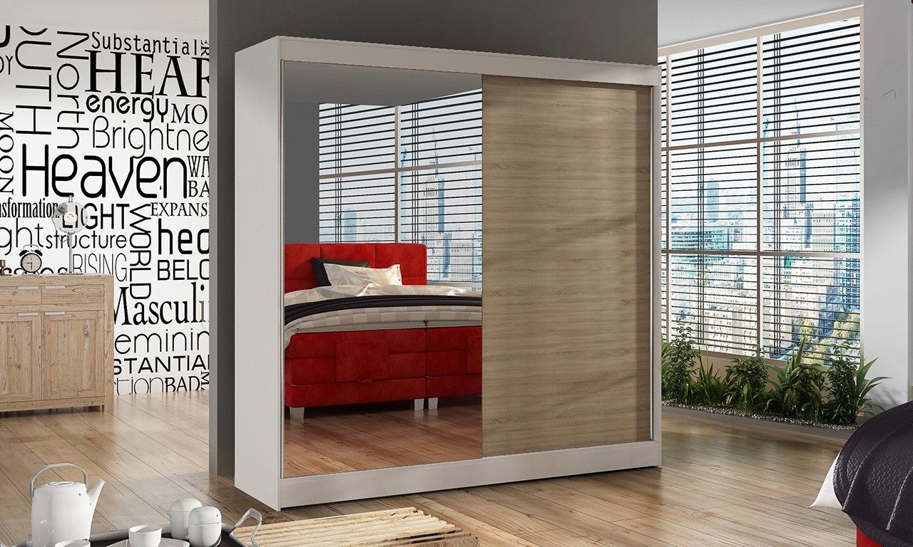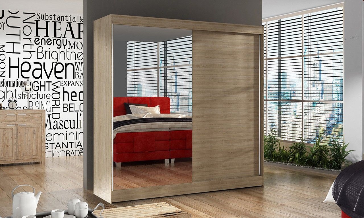 Sofnet Kleiderschrank mit Spiegel Basti I 200 cm - Schiebetürenschrank Schwebetürenschrank