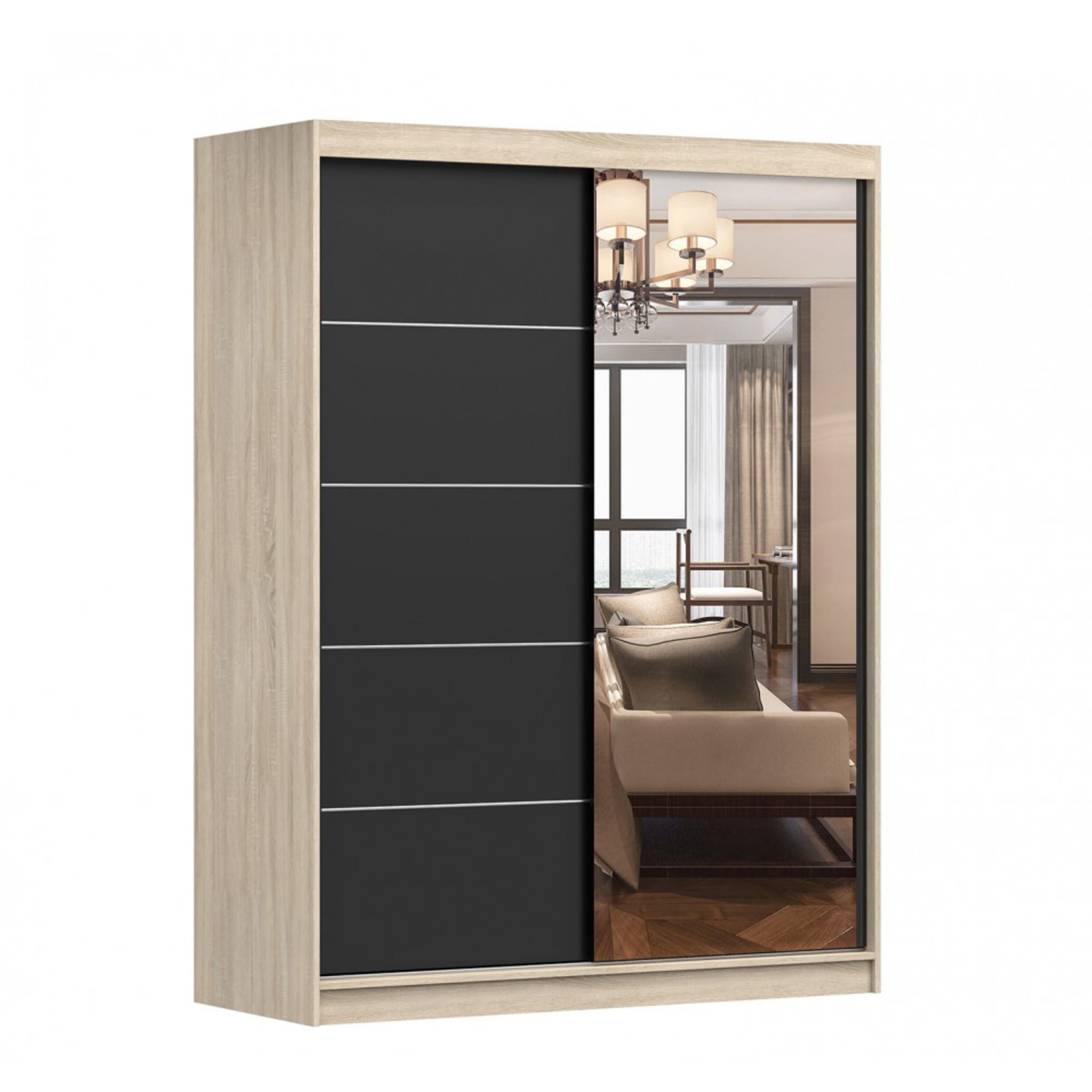 Kleiderschrank mit Spiegel Schwebetürenschrank 2-türig Schrank - Beni 05 DARK