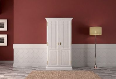 Kleiderschrank in weiß Pinie Landhaus Drehtüren Schrank mit Soft-Close Emma 138 cm