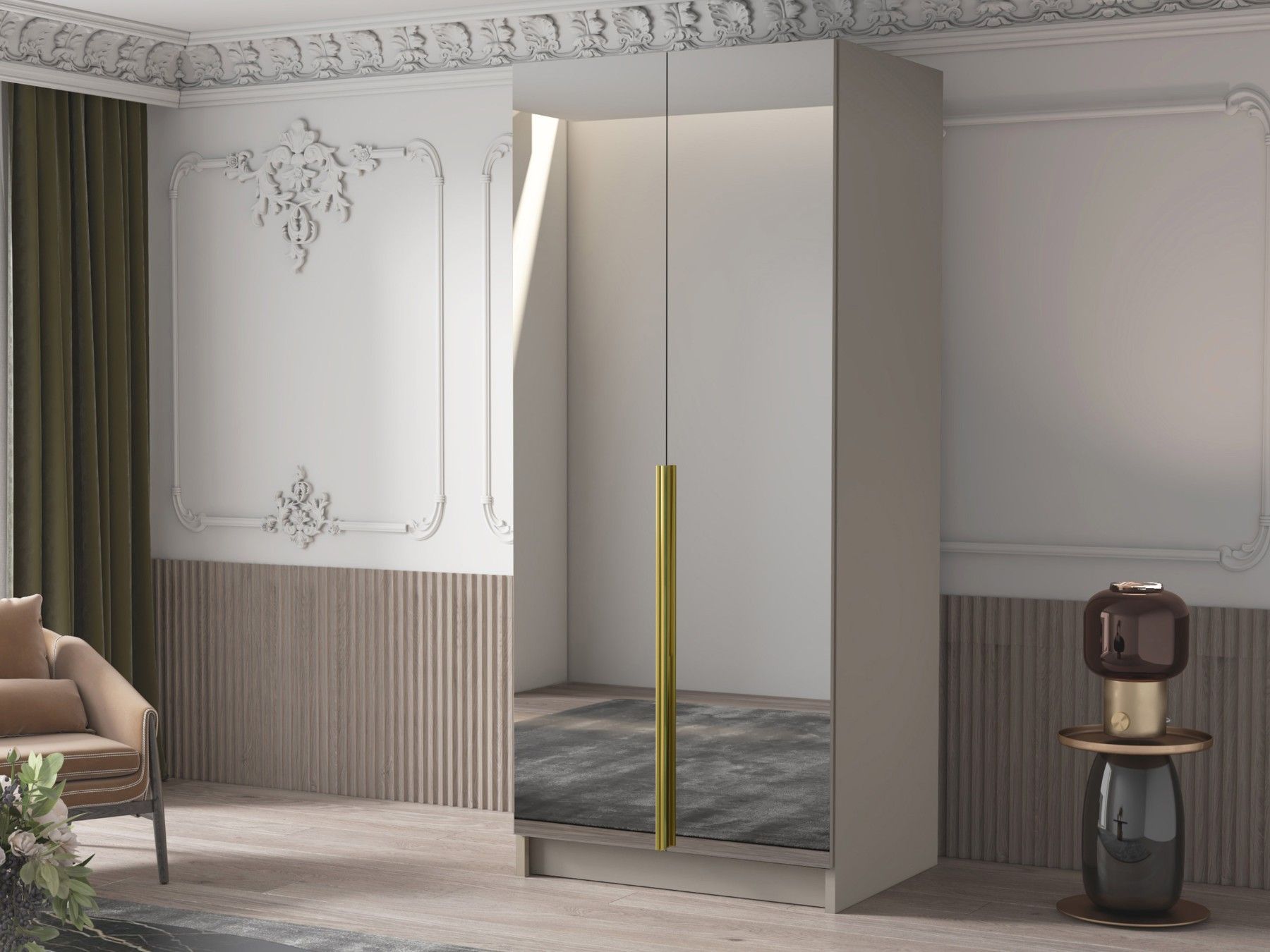 Kleiderschrank Ralizi III Spiegel Garderobenschrank Kleiderstange Drehtürenschrank