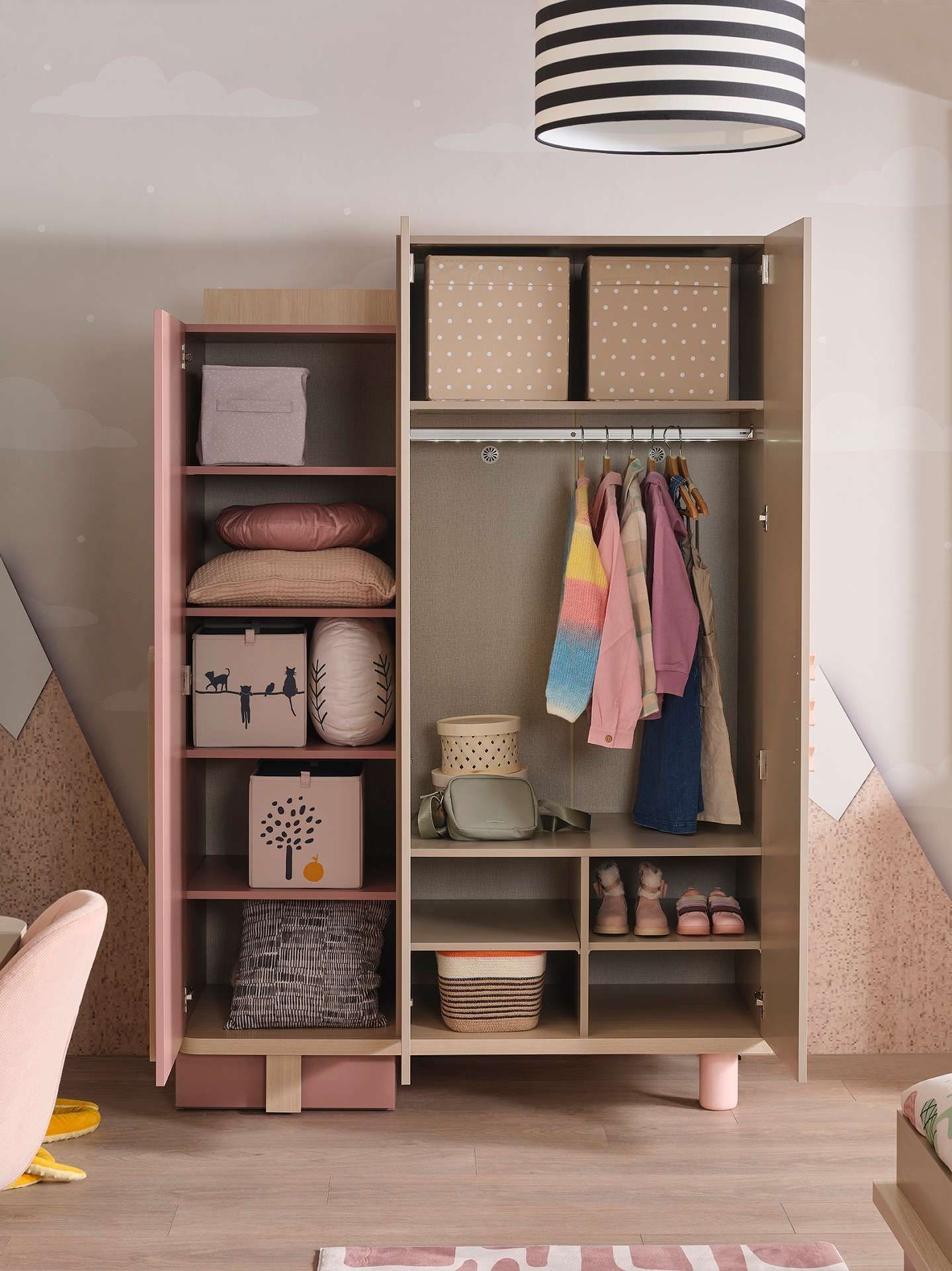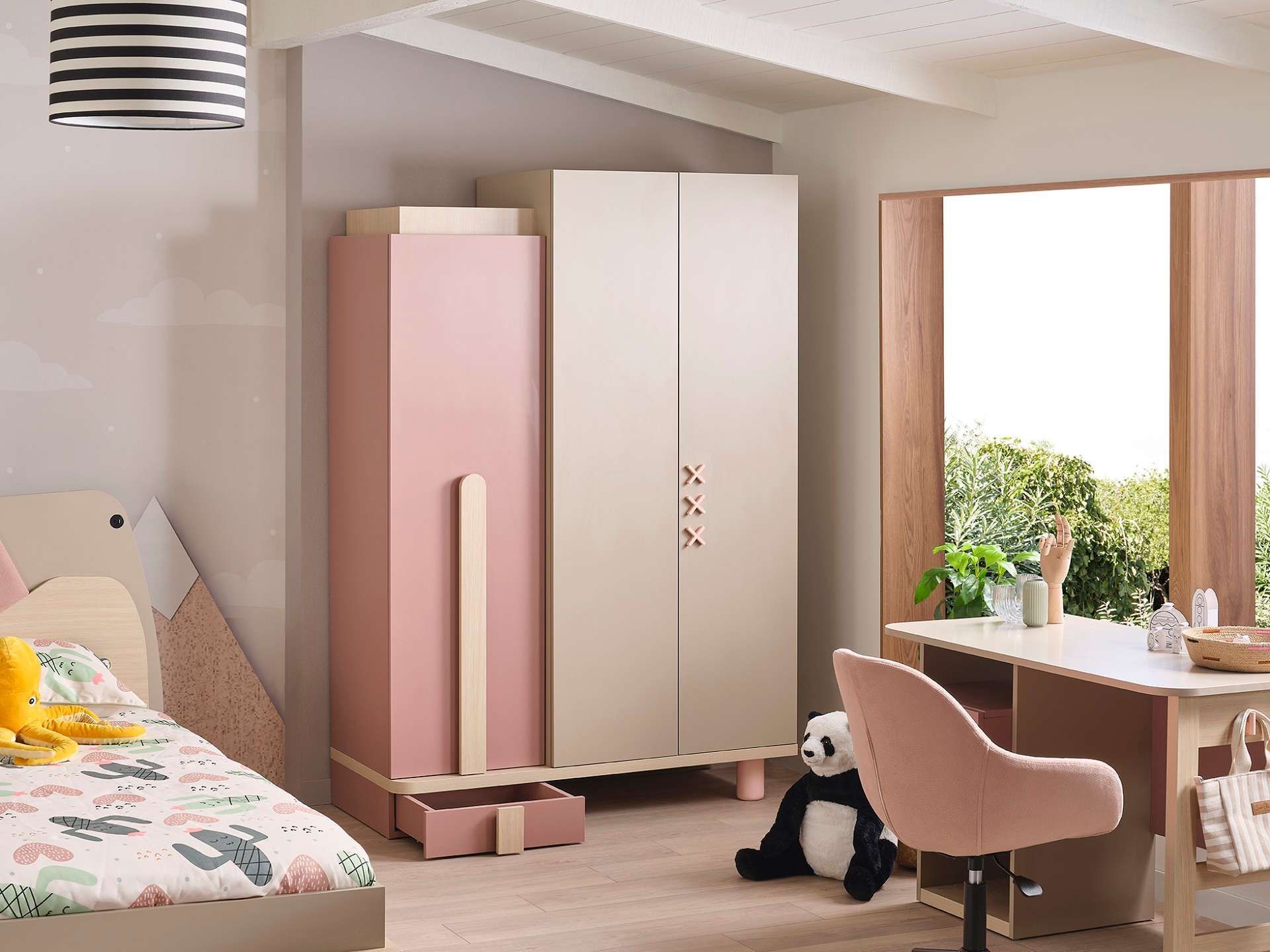 Kleiderschrank Rosie 3-Türig in Rosa/Beige