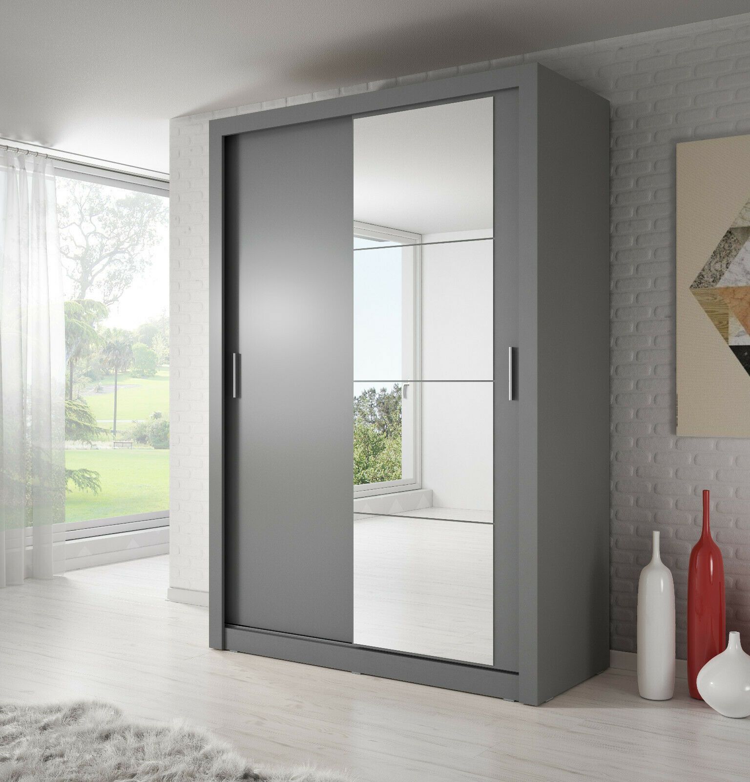 Kleiderschrank Schrank ARTO 04 Spiegel 150 cm Weiß Schwarz Grau Eiche hell natur