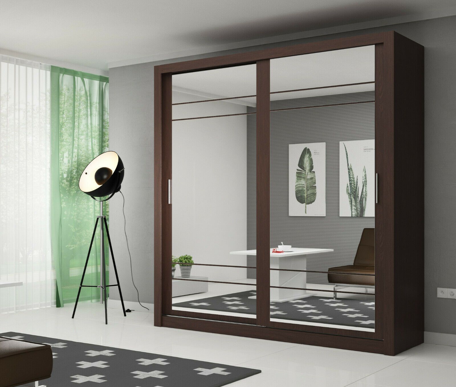 Kleiderschrank ARTO 08 praktisch & modern Moderner 2-türiger Schwebetürenschrank mit zwei Spiegeln. Dieser übersichtliche Schrank bietet Ihnen sehr viel Stauraum und lässt sich hervorragend mit anderen Möbeln kombinieren. Material: Korpus: Laminatplatte Fronten: Laminatplatte (2 Spiegel) Farbvar