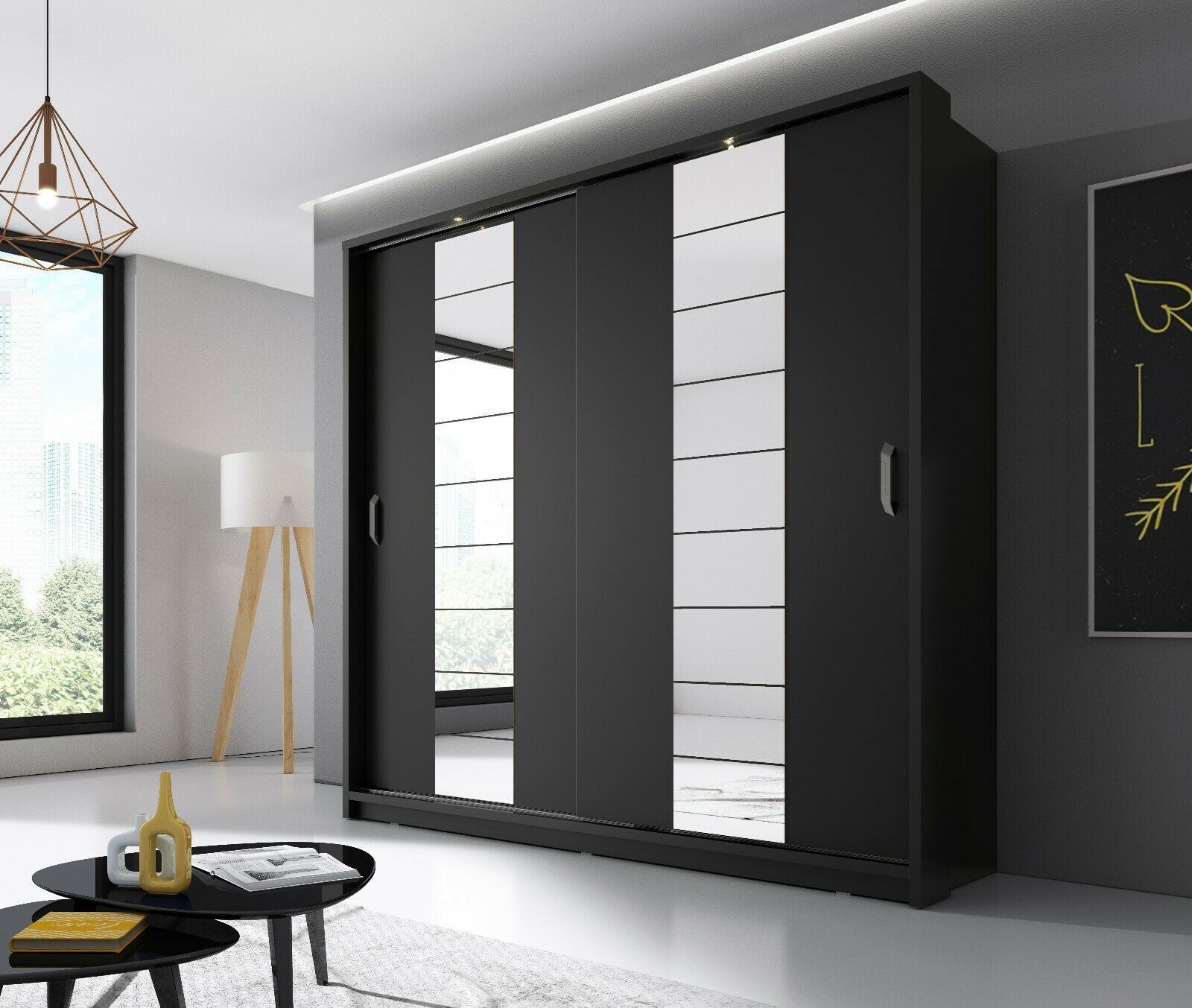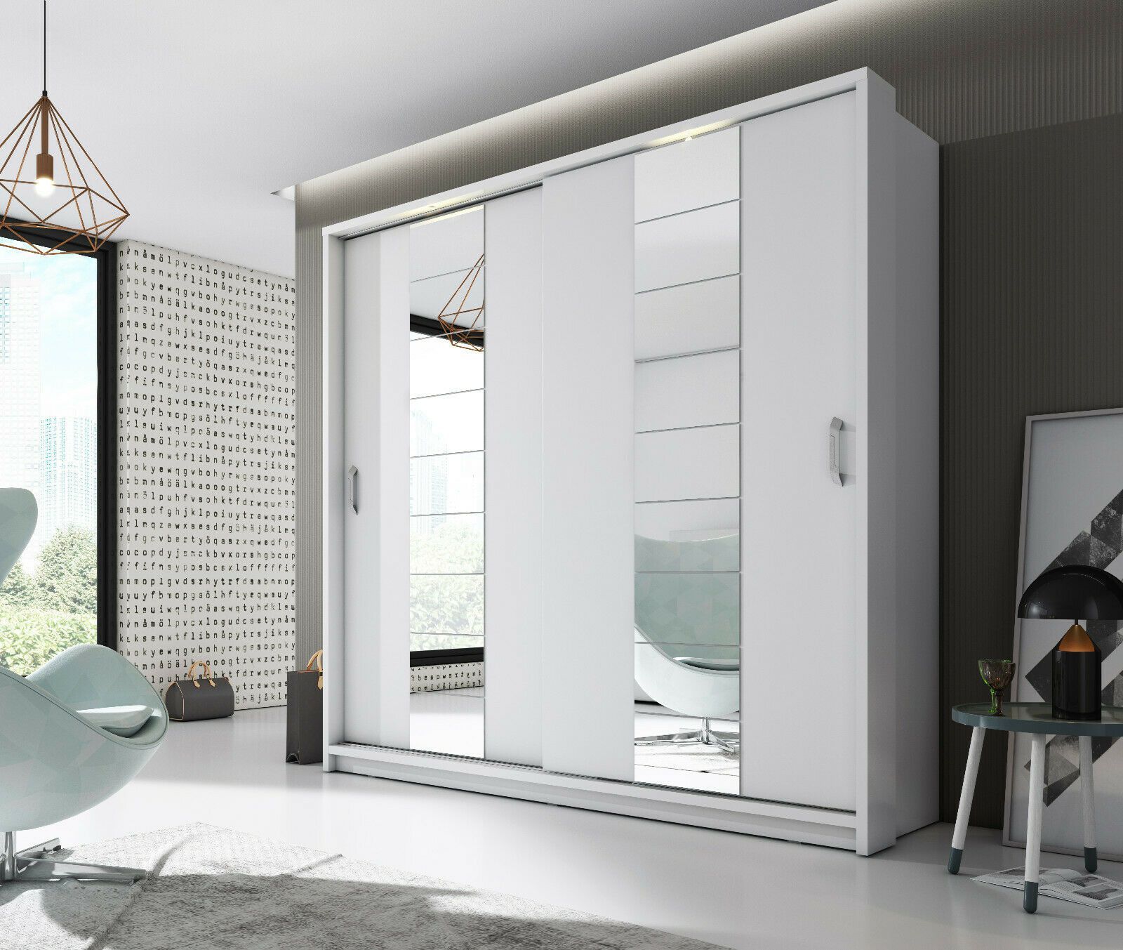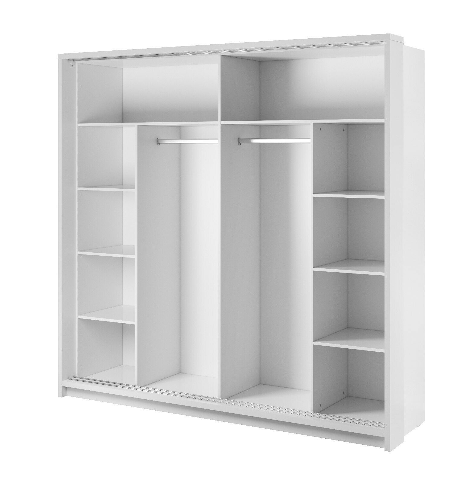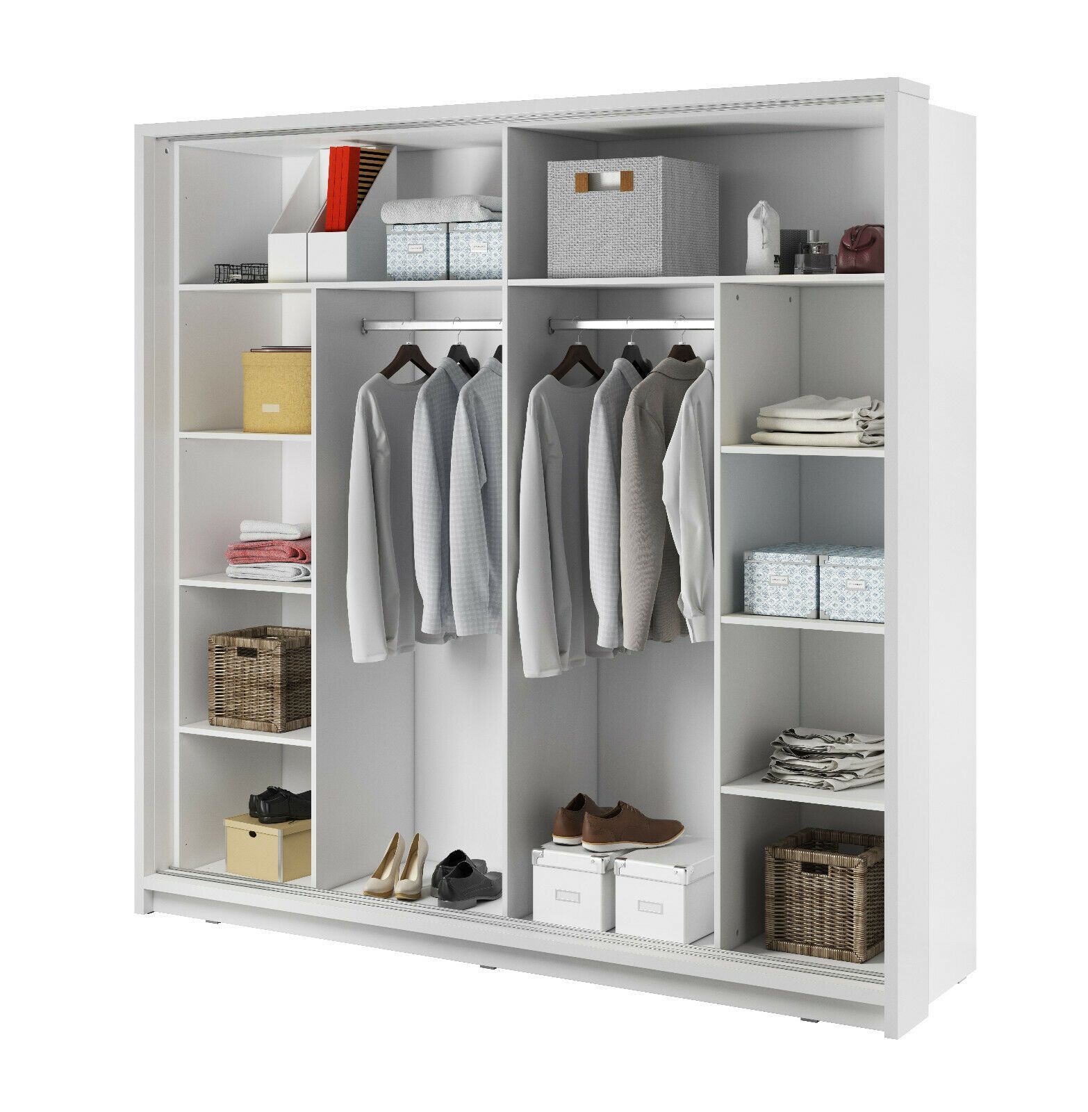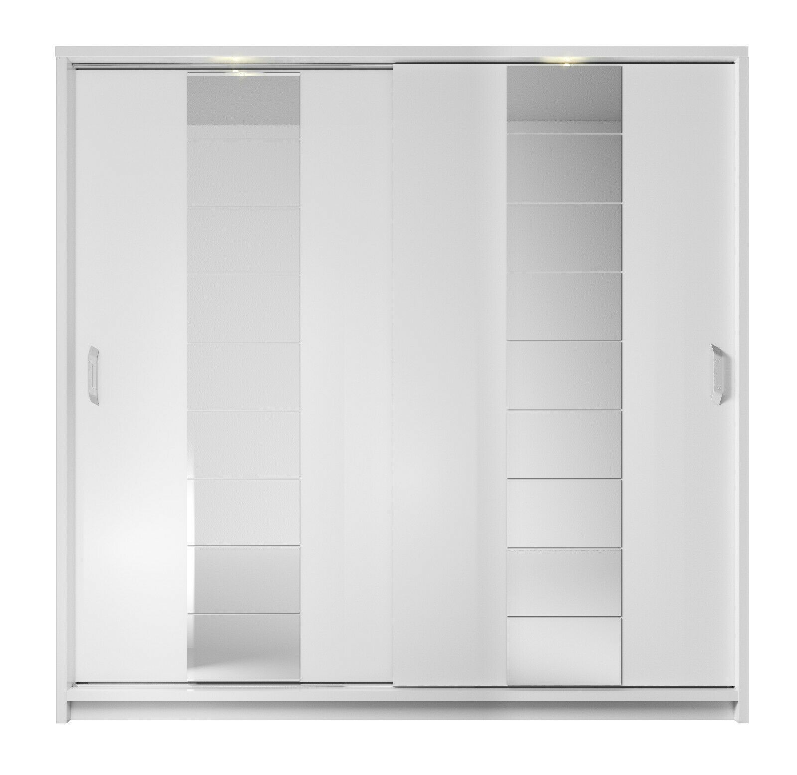 Kleiderschrank ARTO 14 mit LED-Beleuchtung praktisch & modern Moderner 2-türiger Schwebetürenschrank mit 2 Spiegeln und Beleuchtung. Dieser übersichtliche Schrank bietet Ihnen sehr viel Stauraum und lässt sich hervorragend mit anderen Möbeln kombinieren. Material: Korpus: Laminatplatte Fronten: