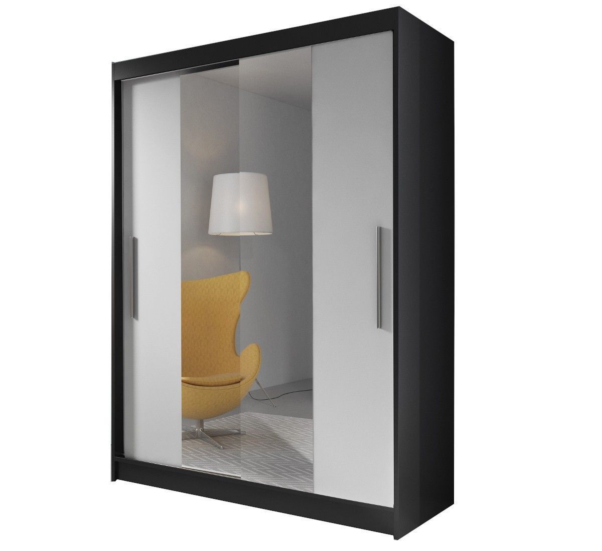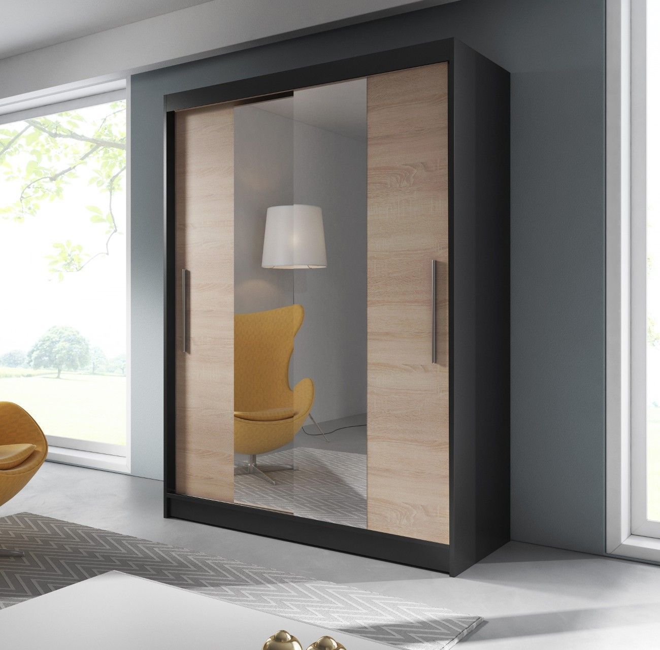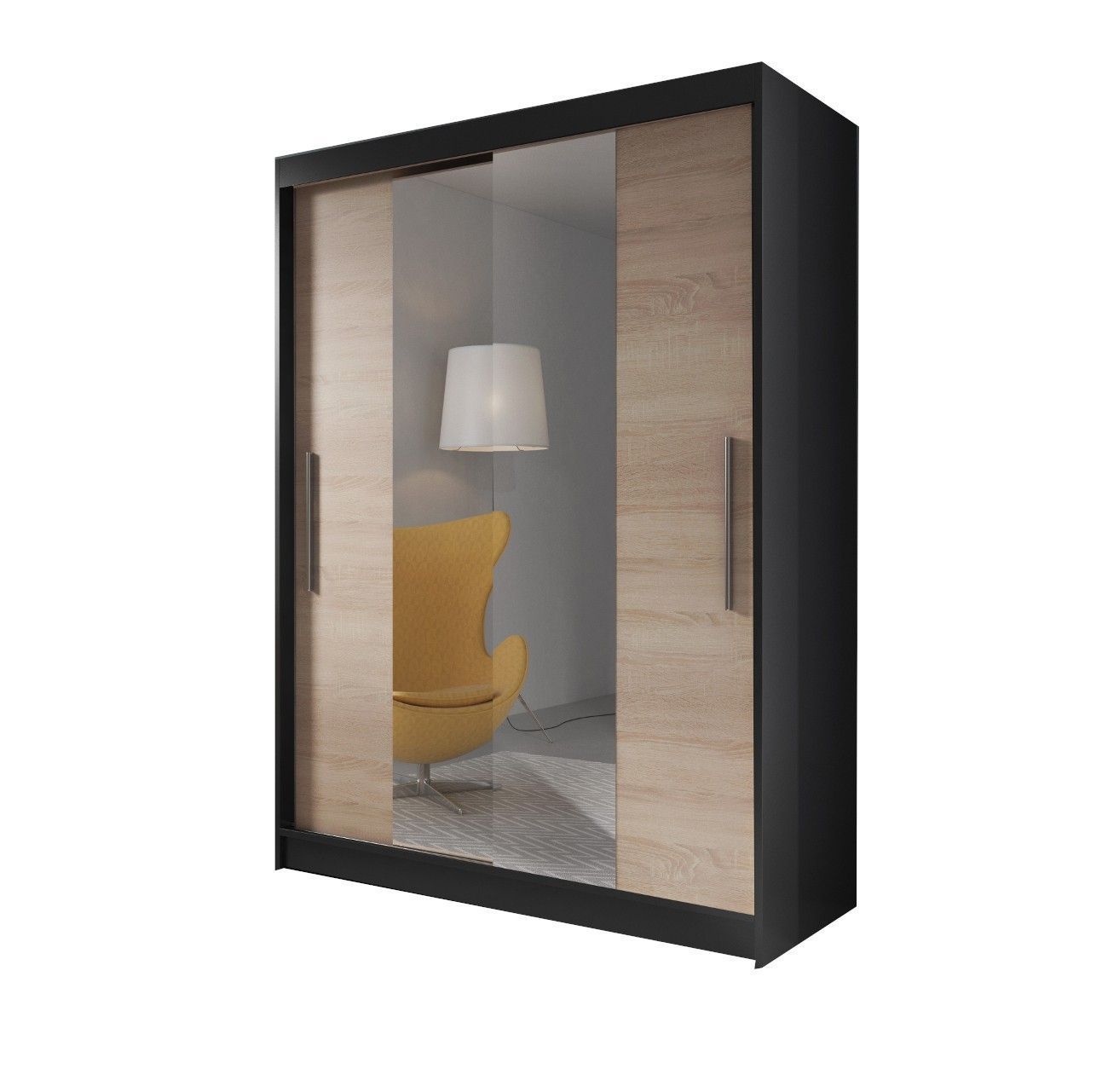 Kleiderschrank Schwebetürenschrank mit Spiegel 2-türig LARA 01 Schwarz + Sonoma