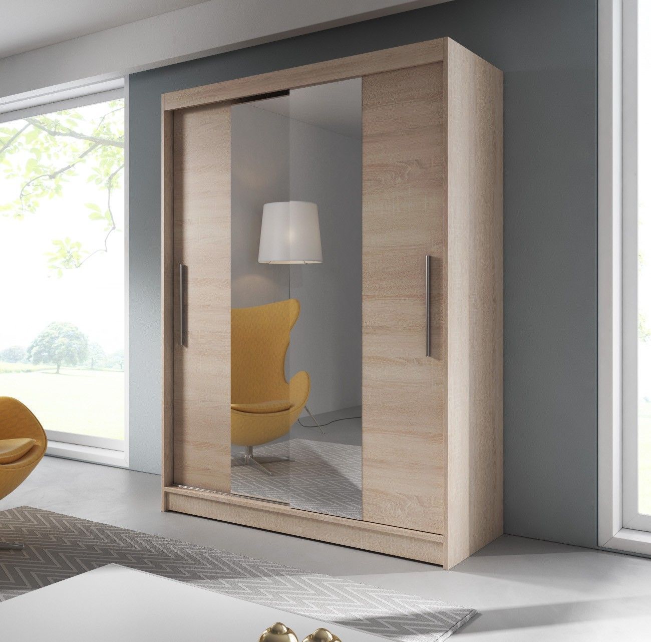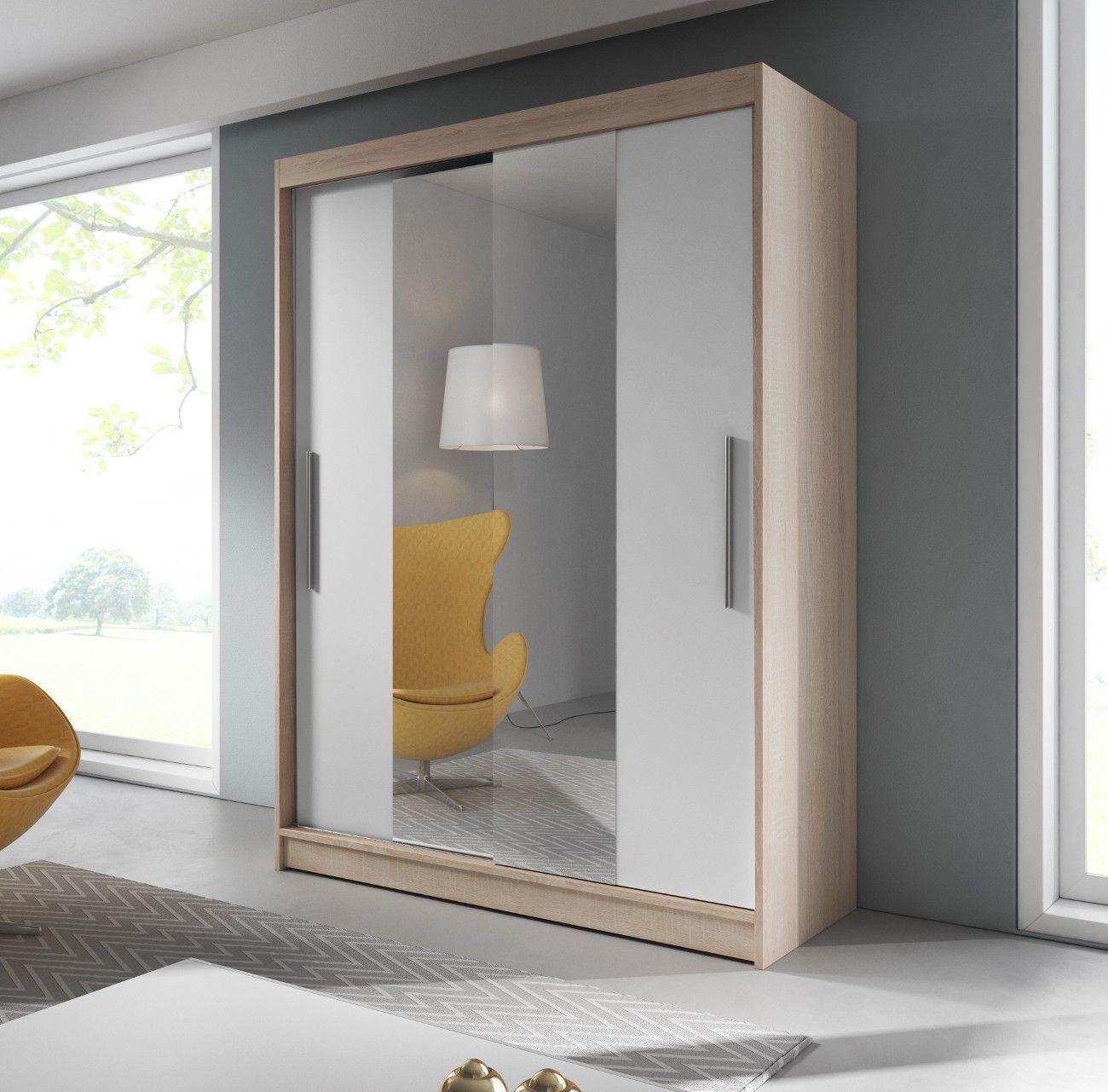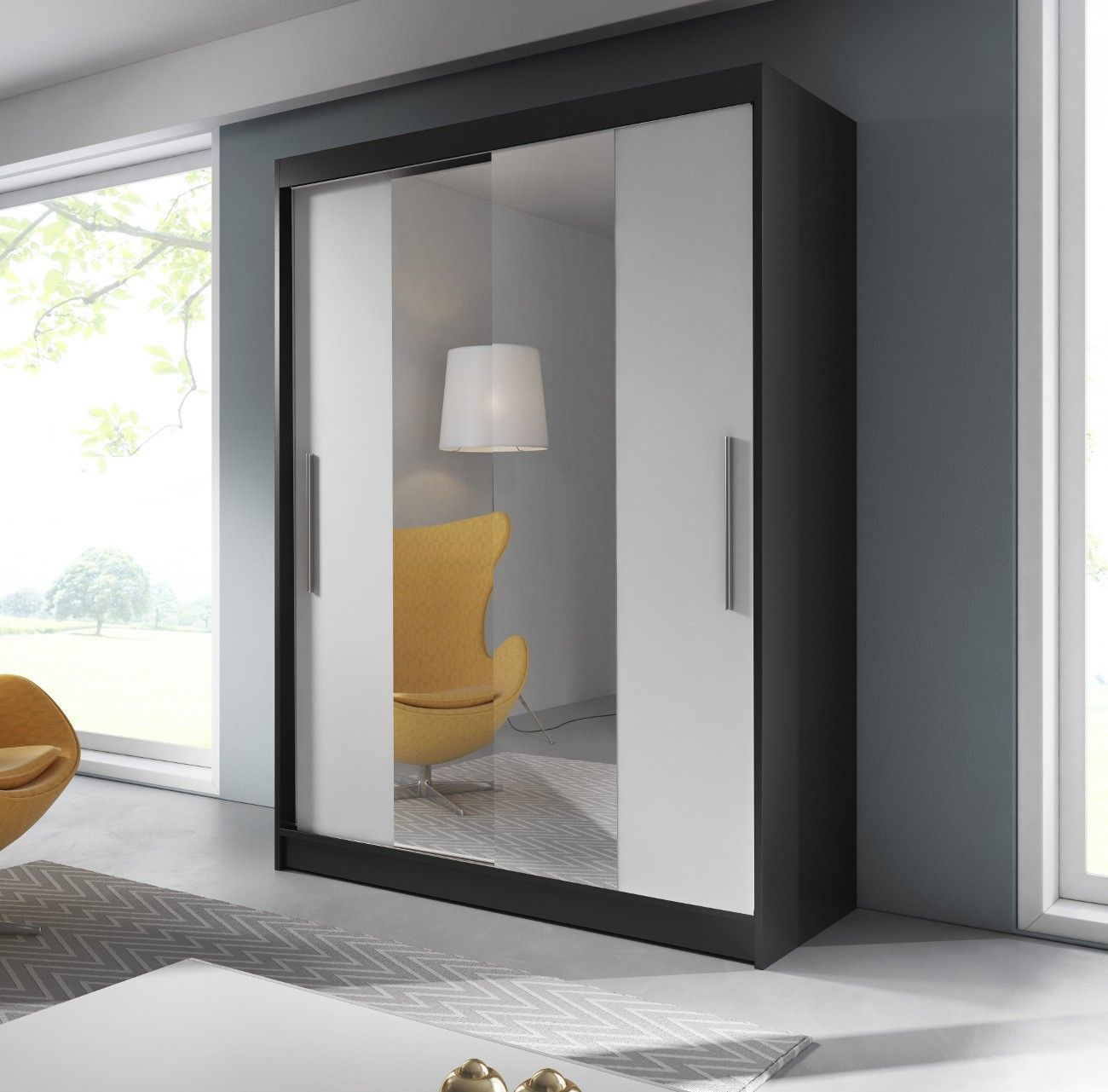 Kleiderschrank Schwebetürenschrank mit Spiegel 2-türig LARA 01 Schwarz + Sonoma