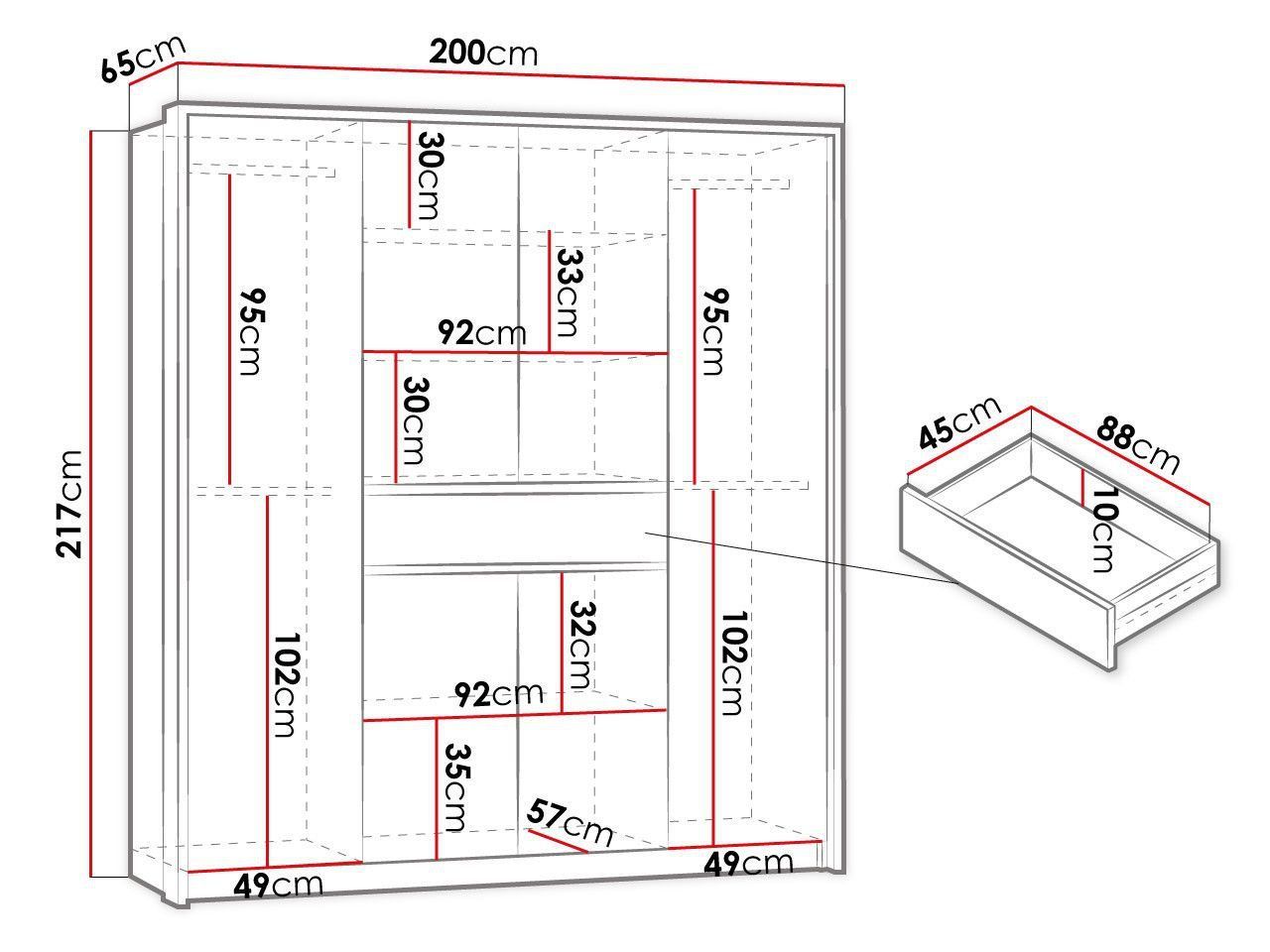 Kleiderschrank Split 200 Drehtür Garderobenschrank Schublade Spiegel Modern NEU