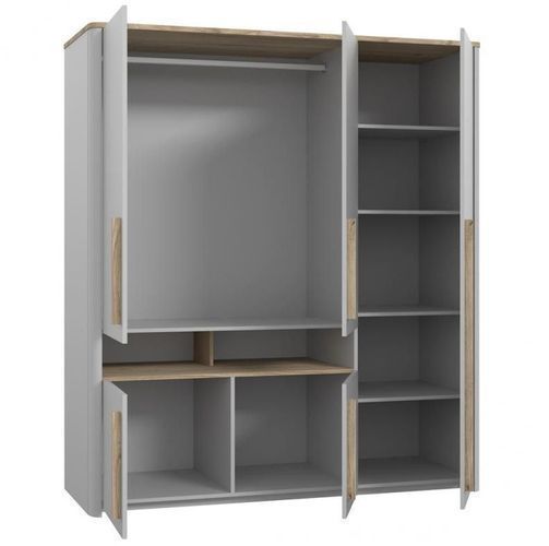 Kleiderschrank Surfinio Schrank 5 Drehtür Kleiderstange Grau/ Catania Eiche 158cm