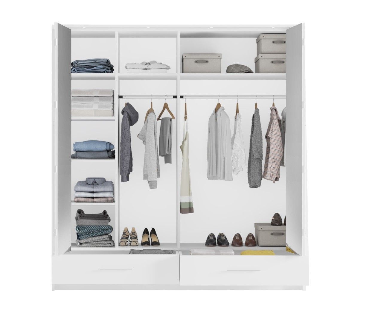 Kleiderschrank : TOLEDO 210 Der Kleiderschrank TOLEDO 210 ist eine Neuheit in unserer Firma. Der Kleiderschrank hat zwei Falttüren, die bequeme Griffe und zwei Schubladen. Der Kleiderschrank hat zwei Kleiderstangen und die Einlegeboden. LED-Beleuchtung ist im Preis enthalten. Funktionales Interieur,
