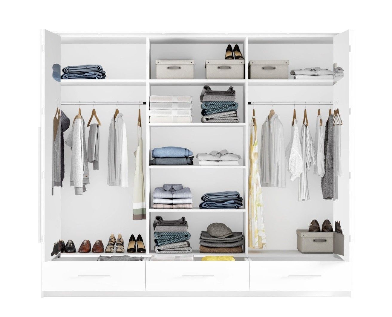 Kleiderschrank : TOLEDO 255 Der Kleiderschrank TOLEDO 210 ist eine Neuheit in unserer Firma. Der Kleiderschrank hat zwei Falttüren, die bequeme Griffe und zwei Schubladen. Der Kleiderschrank hat zwei Kleiderstangen und die Einlegeboden. LED-Beleuchtung ist im Preis enthalten. Funktionales Interieur,