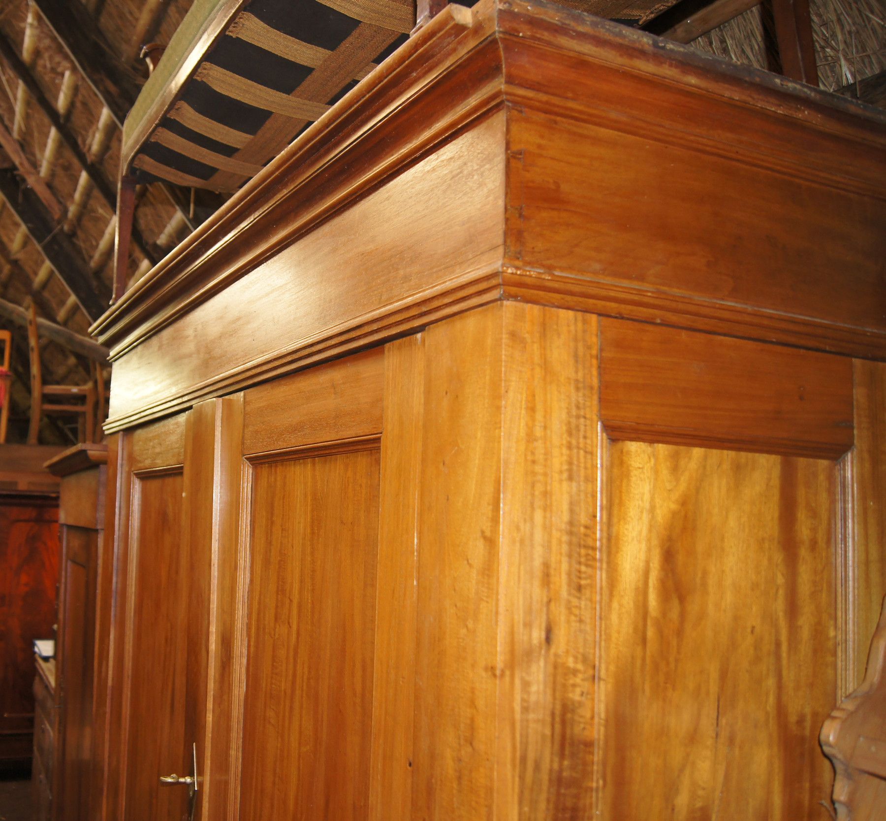 Kleider-Schrank um 1850 (Biedermeier). Herkunft: Norddeutschland. 2-türig, z erlegbar. Material: Mahagoni hell. Maße: H 214, B 180, T 63, Innentiefe 50 cm. Lieferung im Umkreis von 30 km frei Haus! Sonst Transport mit Spedition möglich (je nach Angebot und Entfernung!). Der angegebene Versandpreis b
