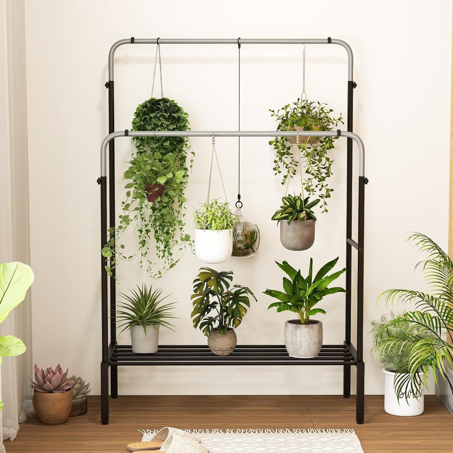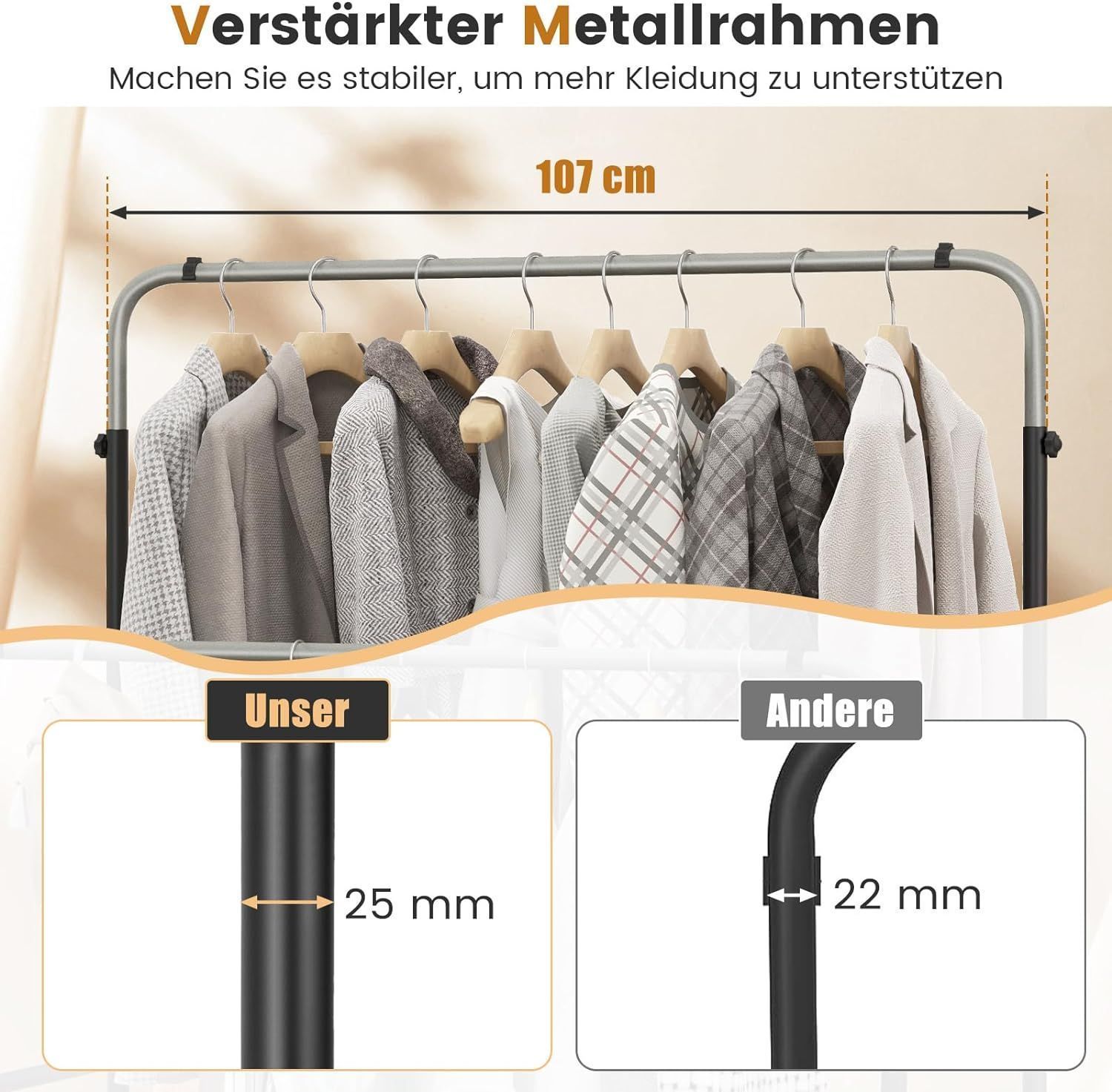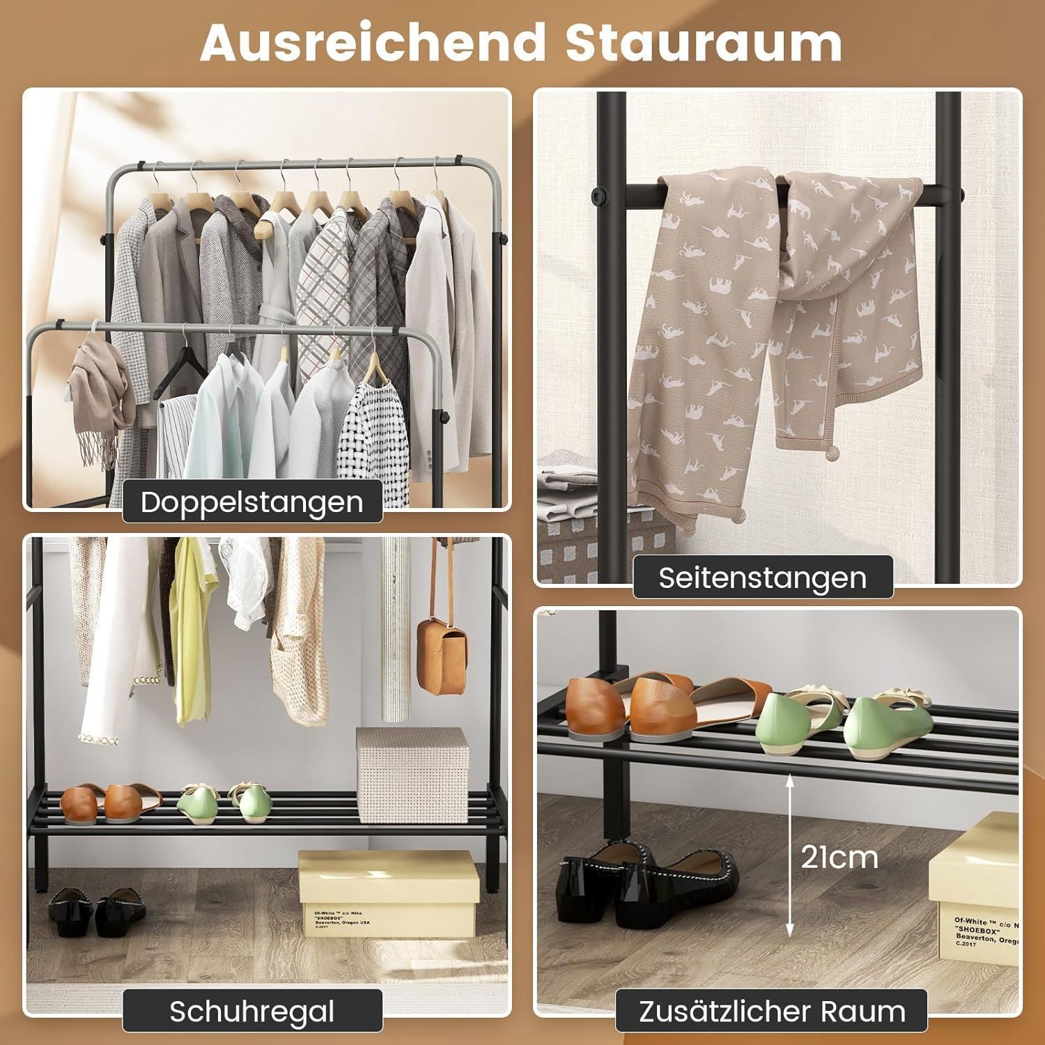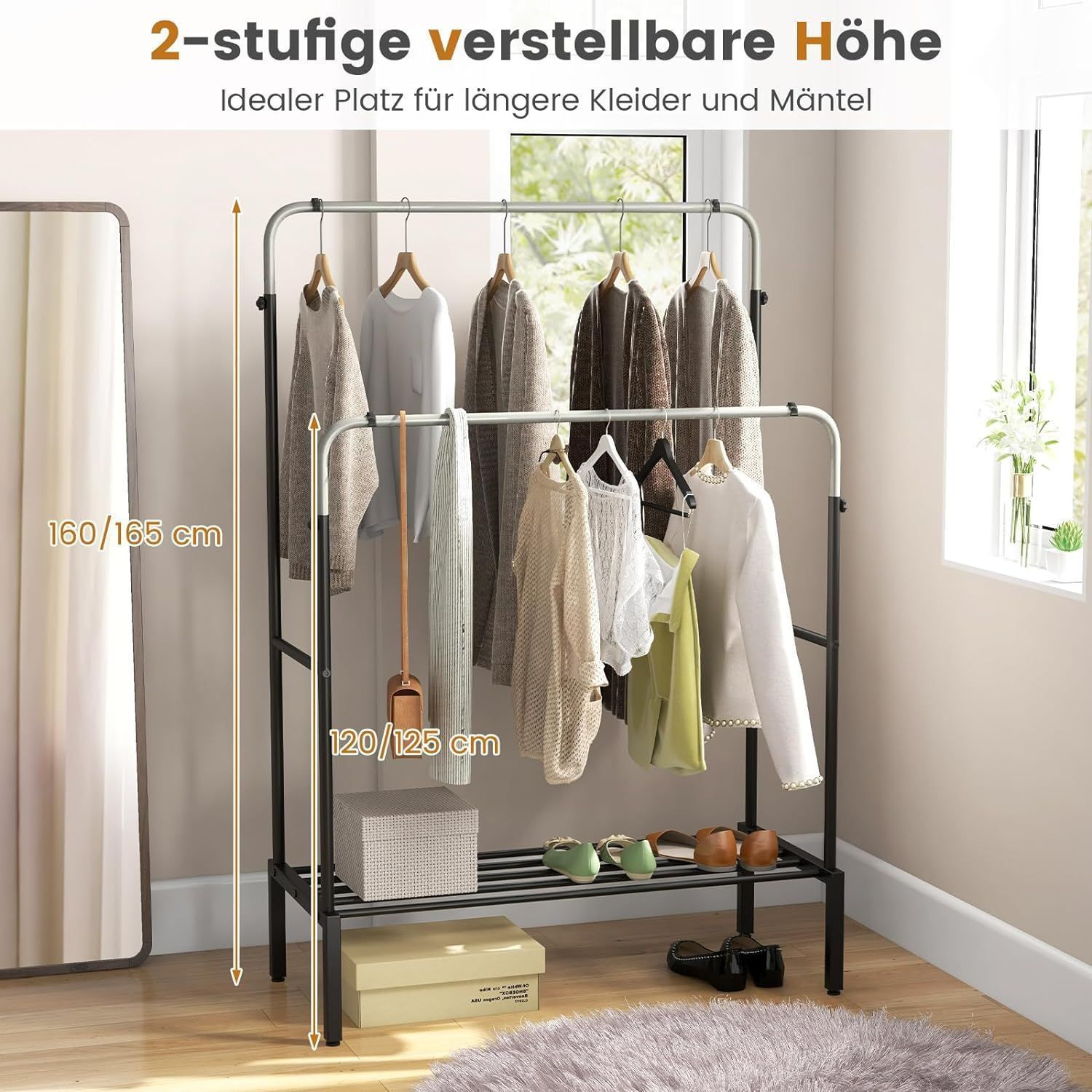 Kleiderständer mit 2 Kleiderstangen, Garderobenständer doppelt mit verstellbaren Höhe