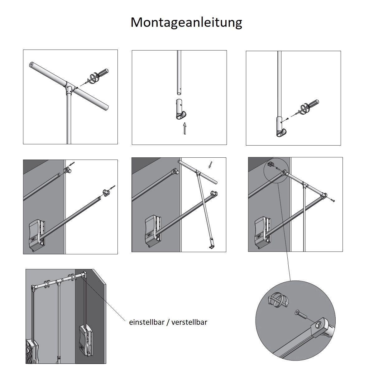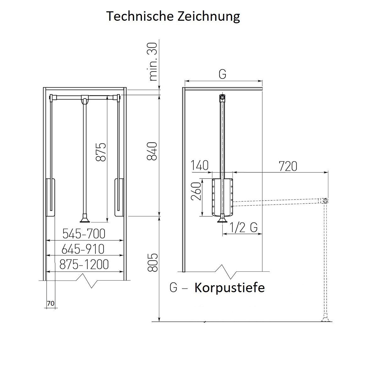 Kleiderstange Stahl Kleiderlift 545-1200mm Schranklift Garderobenlift Druckfeder