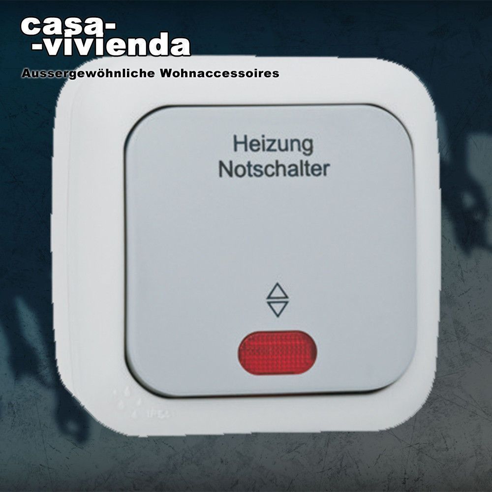 casavivienda Außergewöhnliche Wohnaccessoires ... ...anders als alle Anderen... Heizungsnotschalter, rote Kalotte für KLEIN®, AQUA 54 - grau dunkelgrau - (original KLEIN®) Verwendung: p assend für Schalterprogramm KLEIN ®, AQUA 54 Besonderheiten: IP 54, Gehäuse grau, Abdeckung Einsatz dunkelgrau. Mi