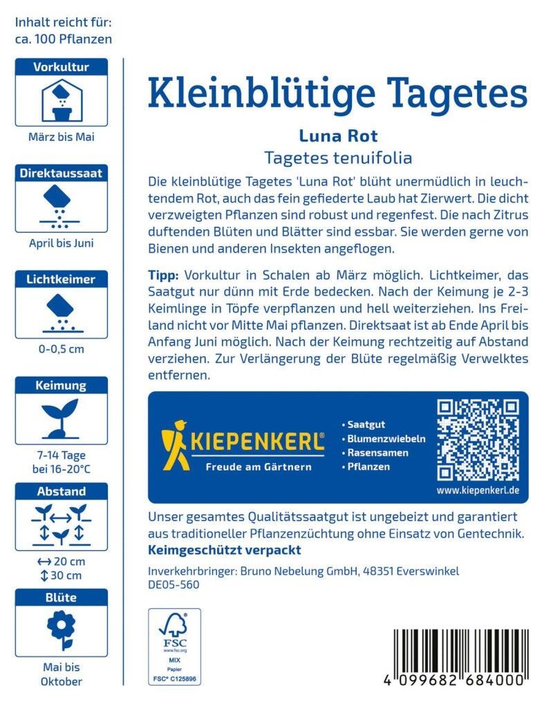 Kiepenkerl Kleinblütige Tagetes Luna Rot, Studentenblume mit kleinen, duftenden Blüten