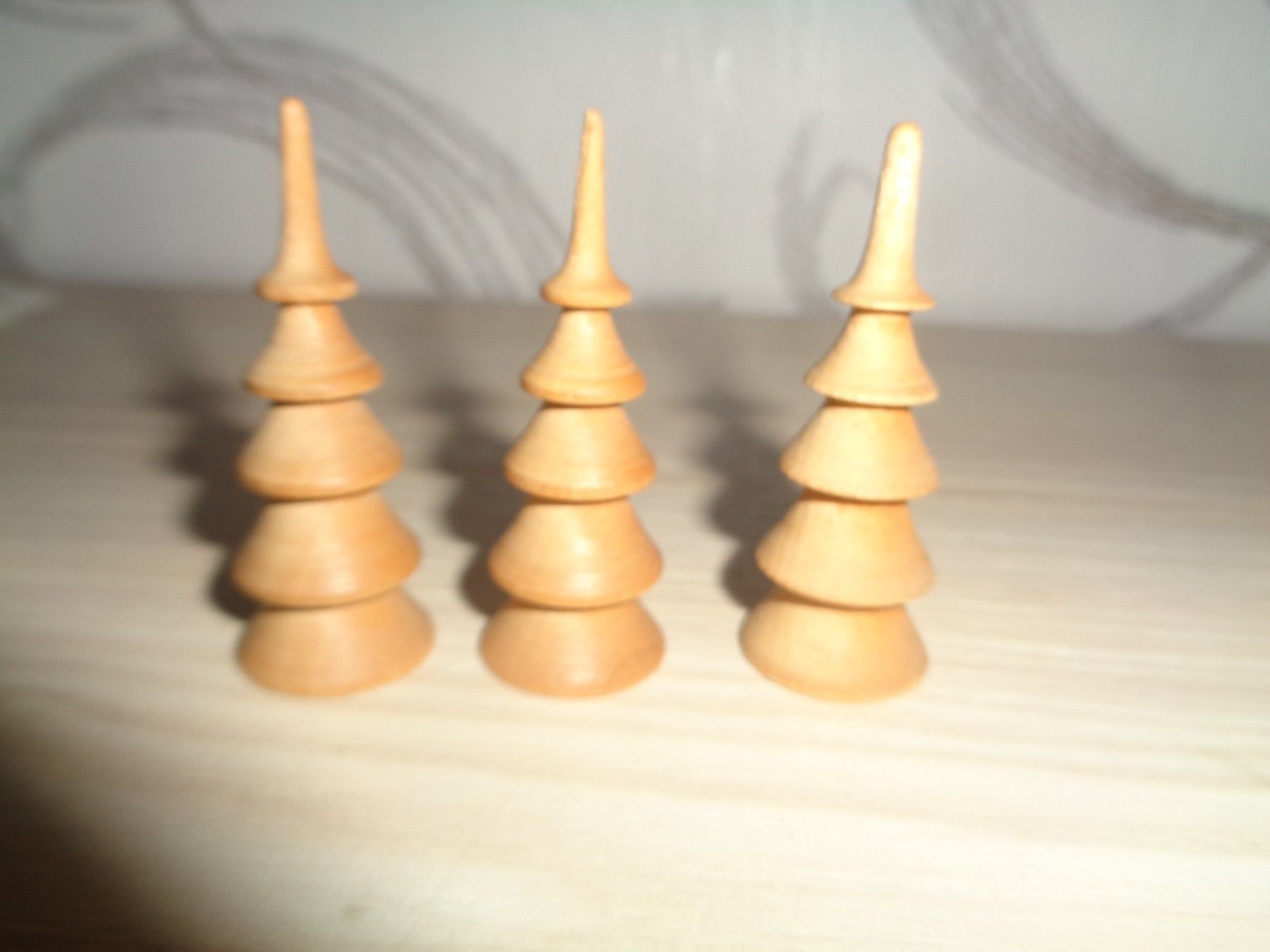 kleine Bäume gedrechselt Erzgebirge Handarbeit 5,5cm 3 Stück