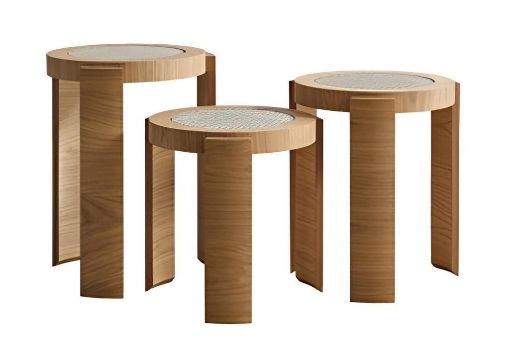 Kleine Beistelltische im Set Natürliche Holzoptik mit Rattanoberfläche