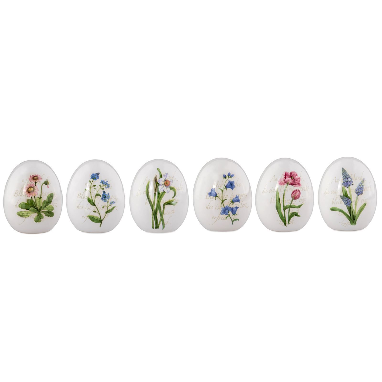 kleine Deko Tisch Ostereier Set Motiv Blumen, Porzellan Oster-Deko Eier 7.2 cm