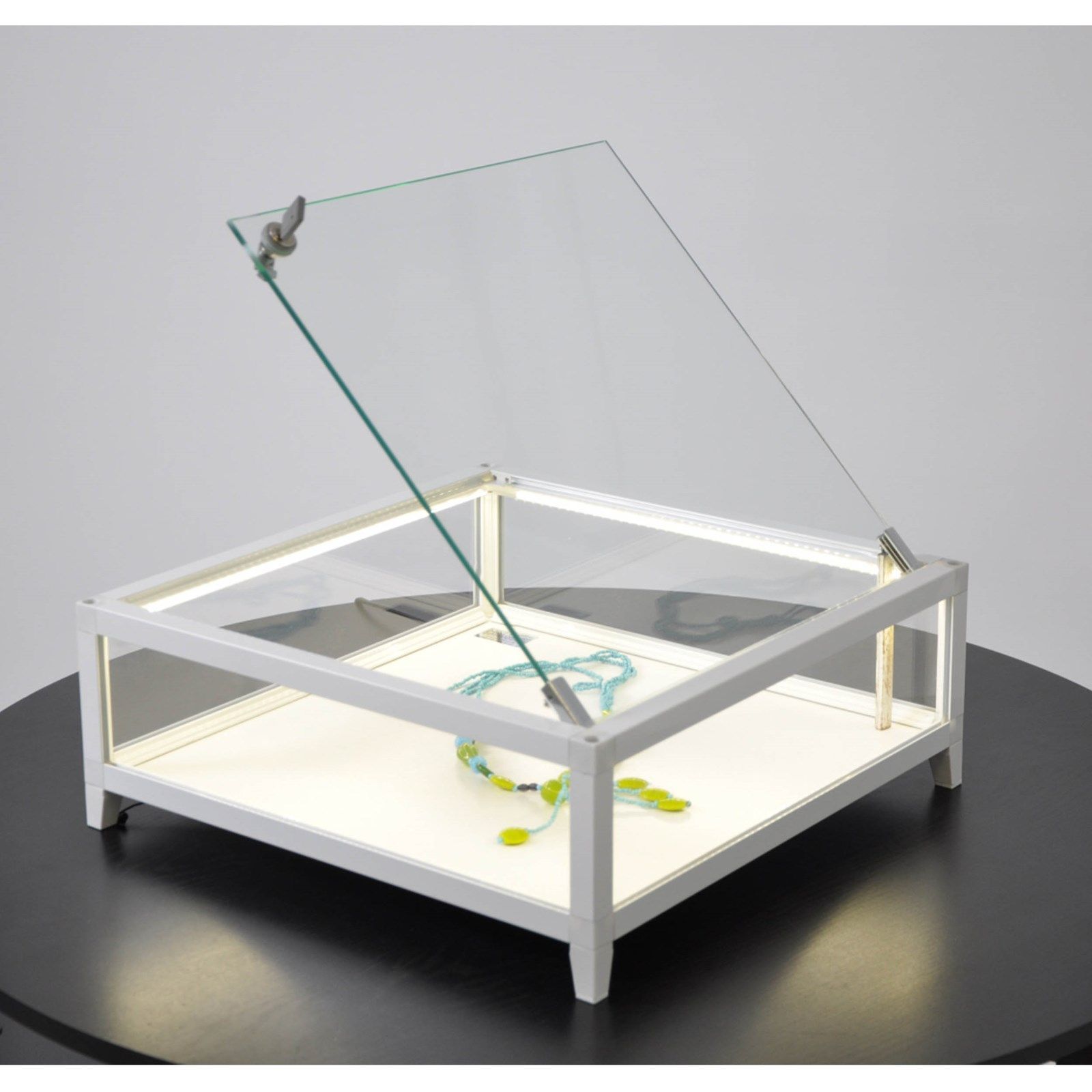 kleine flache Tisch Präsentationsvitrine beleuchtet mit Schloss 42 cm weiß
