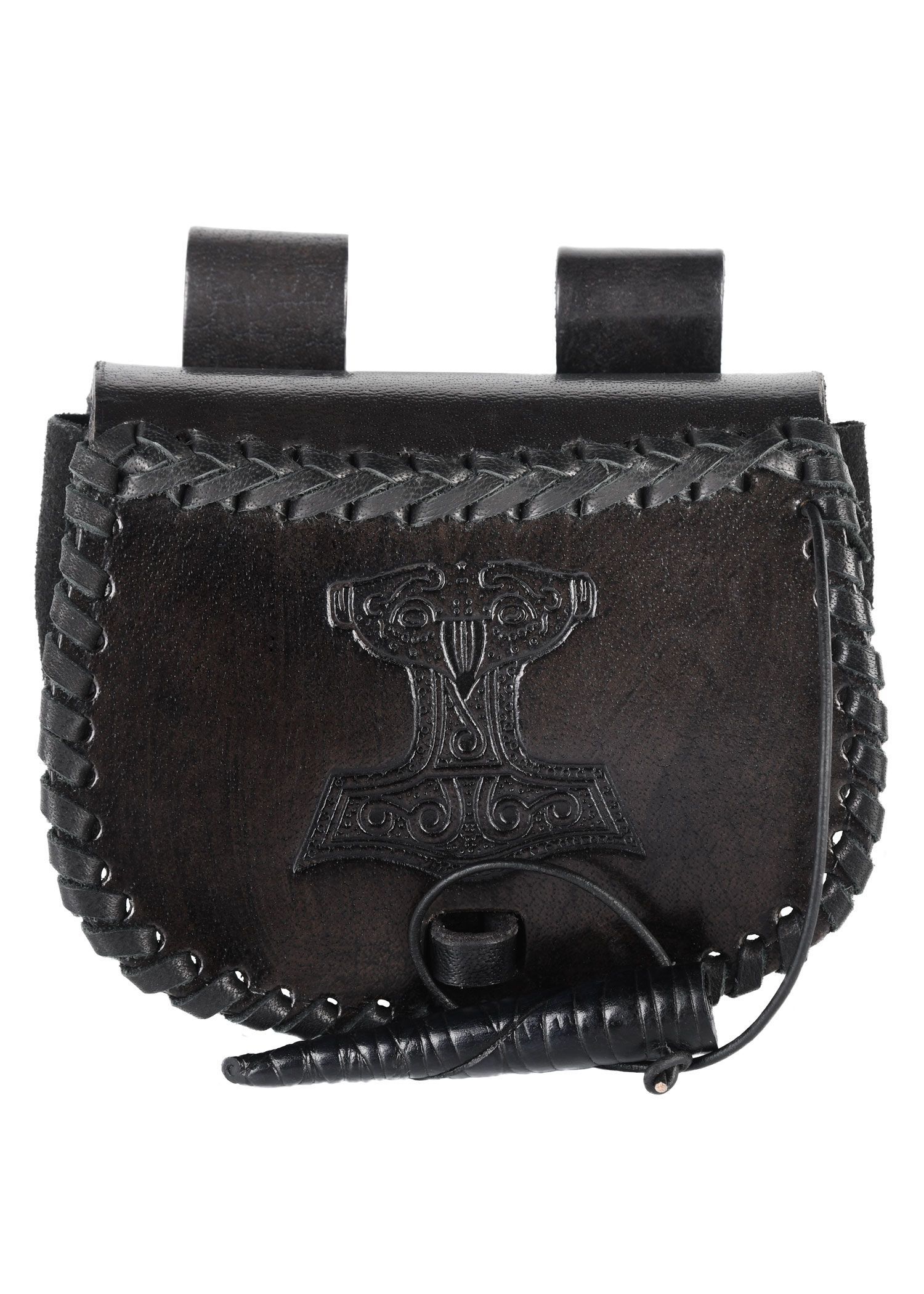 Kleine Gürteltasche aus Leder mit Thorshammer-Prägung, Schwarz
