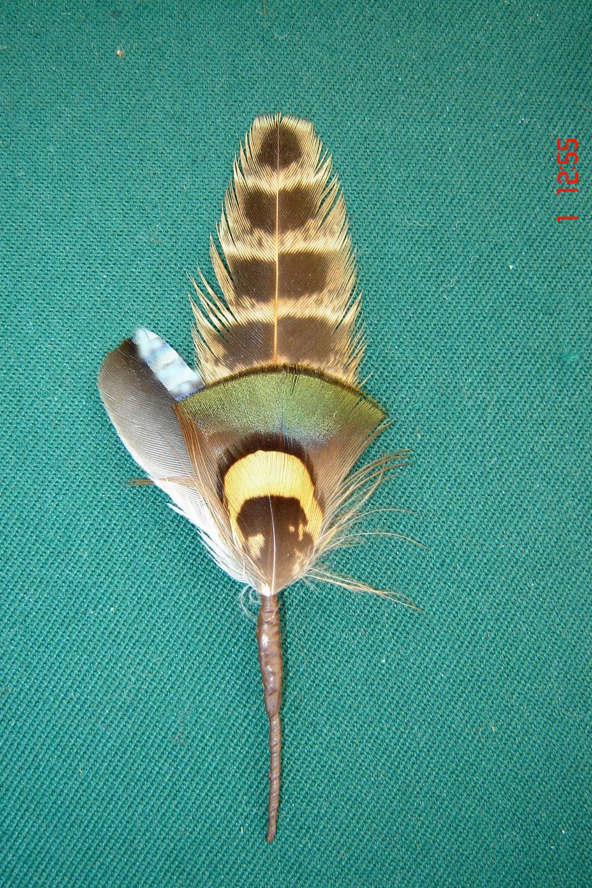 kleine Hutfeder braun grün ca 6,5cm Trachtenhutfeder Hutschmuck Feder Nr794