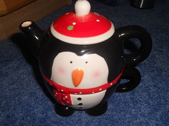 kleine Kaffeekanne Teekanne Figurenkanne mit Tasse Pinguin Höhe ohne Deckel 11cm an der Kanne von innen Gebrauchsspuren, von aussen Haarrisse in der Glasur Beim Kauf weiterer Artikel bieten wir Versandrabatt an.