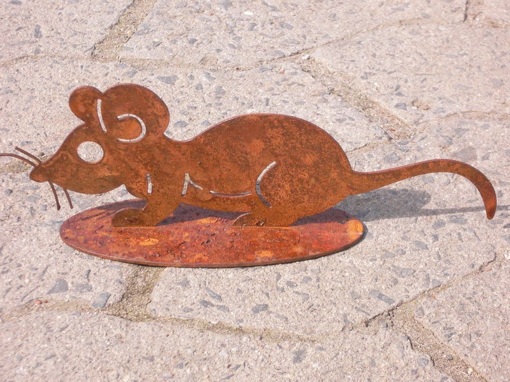 KLEINE MAUS 20x7cm Mäuschen Rost Edelrost Rostfigur Corten Metall Bauernhof Deko