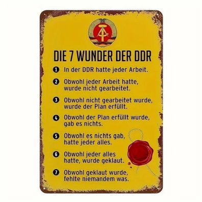 • Blechschild die 7 Wunder der DDR 30x20cm Retro Vintage TE626