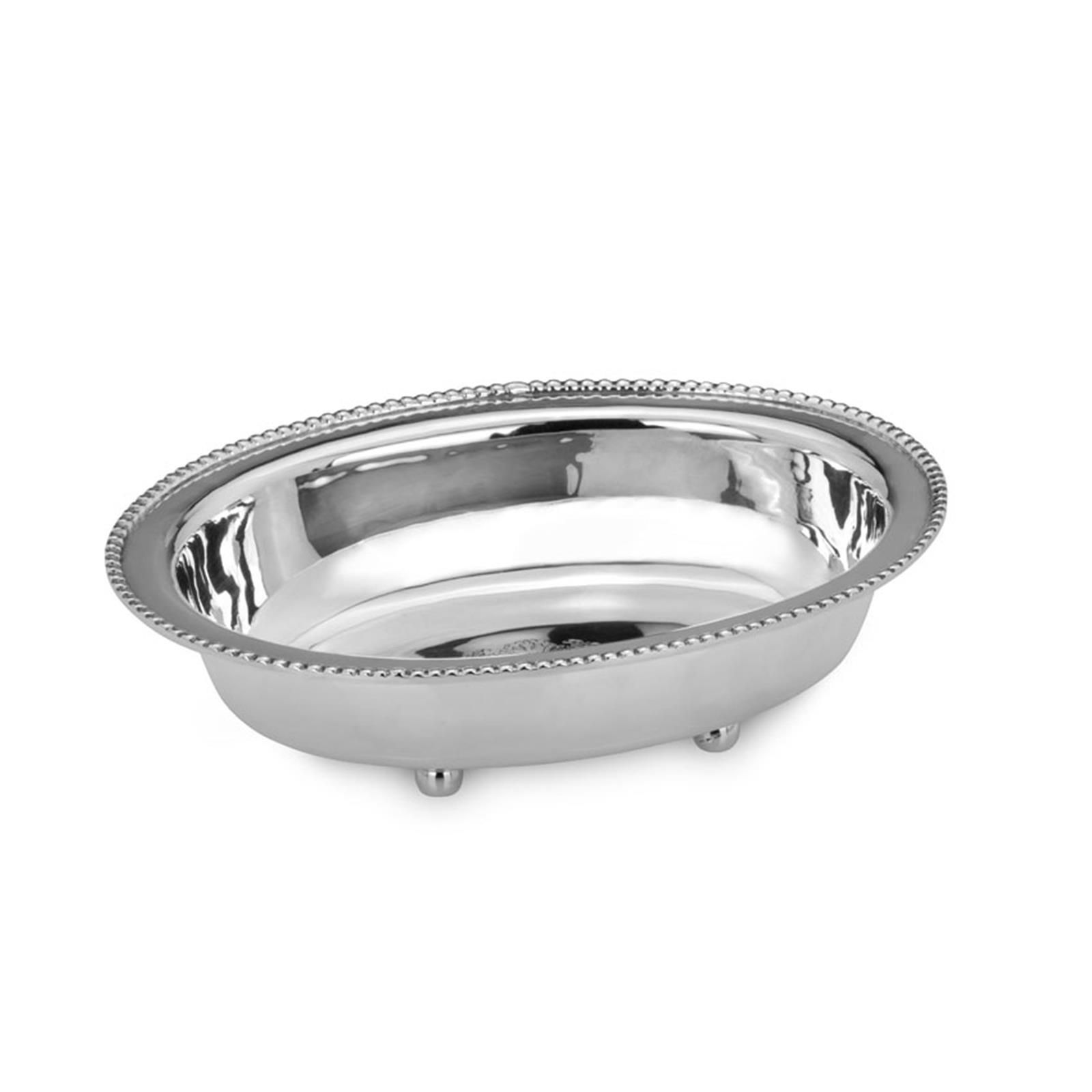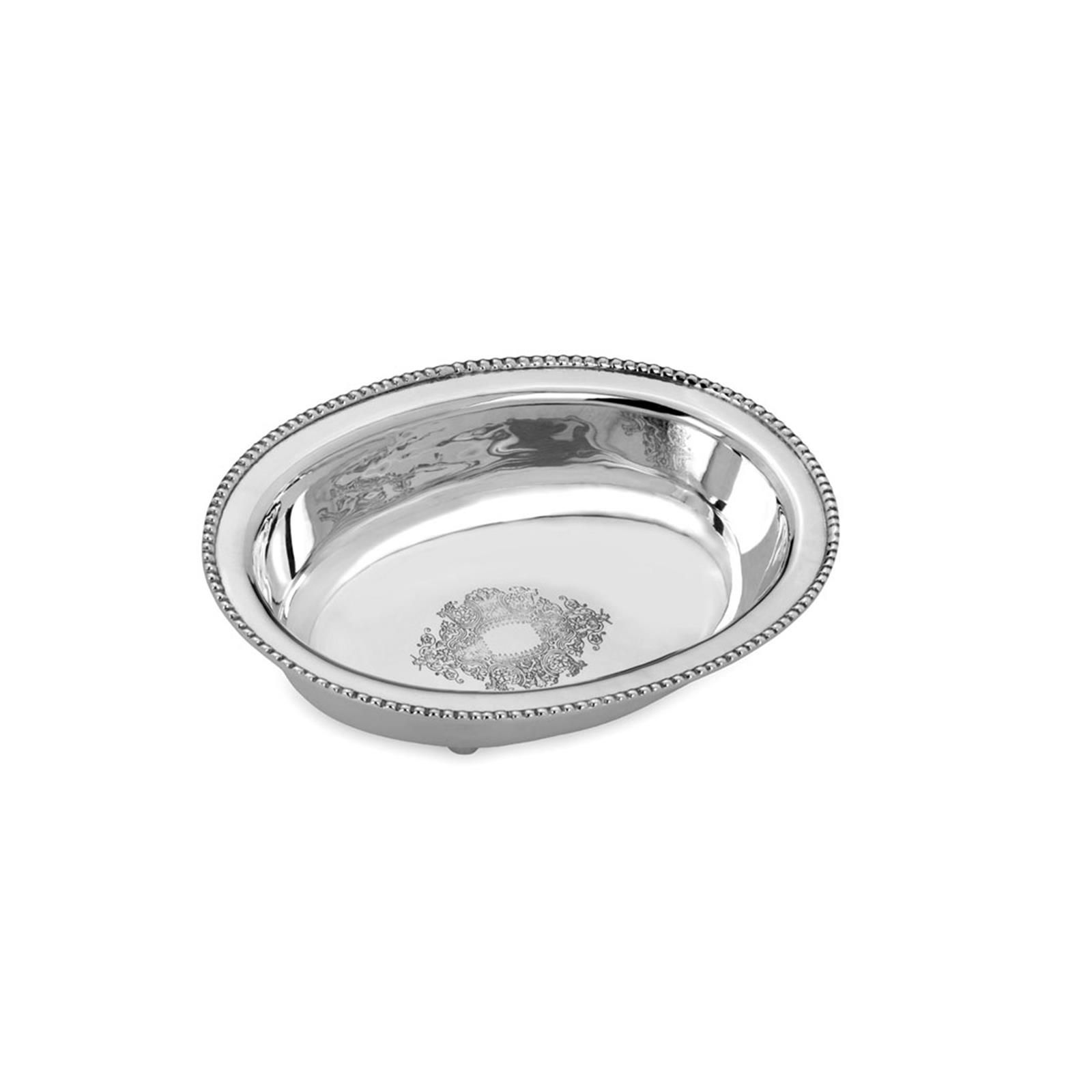 kleine ovale versilberte Deko Schale 18 x 13 cm mit Perlenrand
