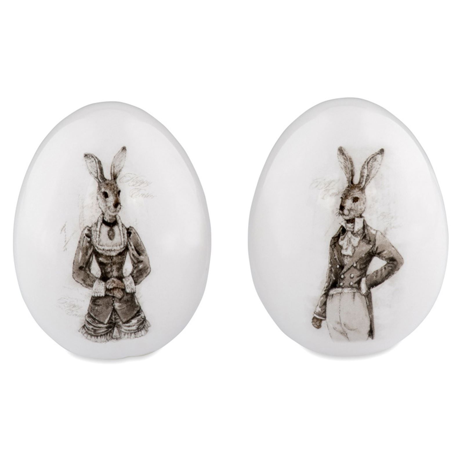 kleine Porzellan Deko Ostereier Motiv Hasen 2-teilig 8 cm hoch