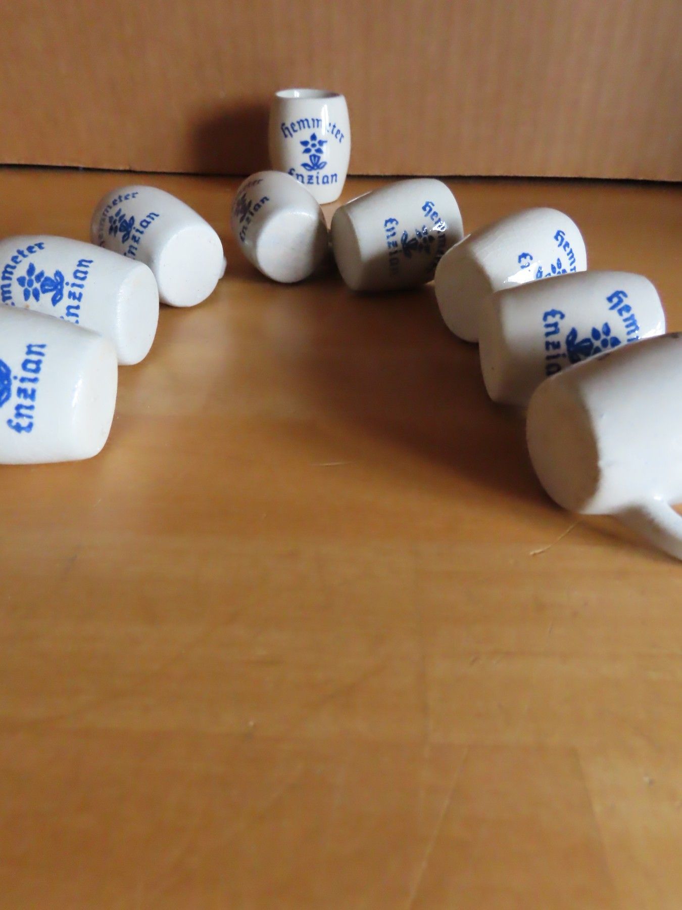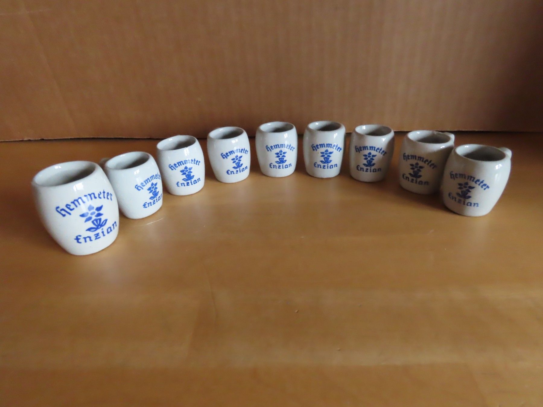 kleine Schnapspinnchen Krüge Hemmeter Enzian 8 ca.3,5 cm H /9st