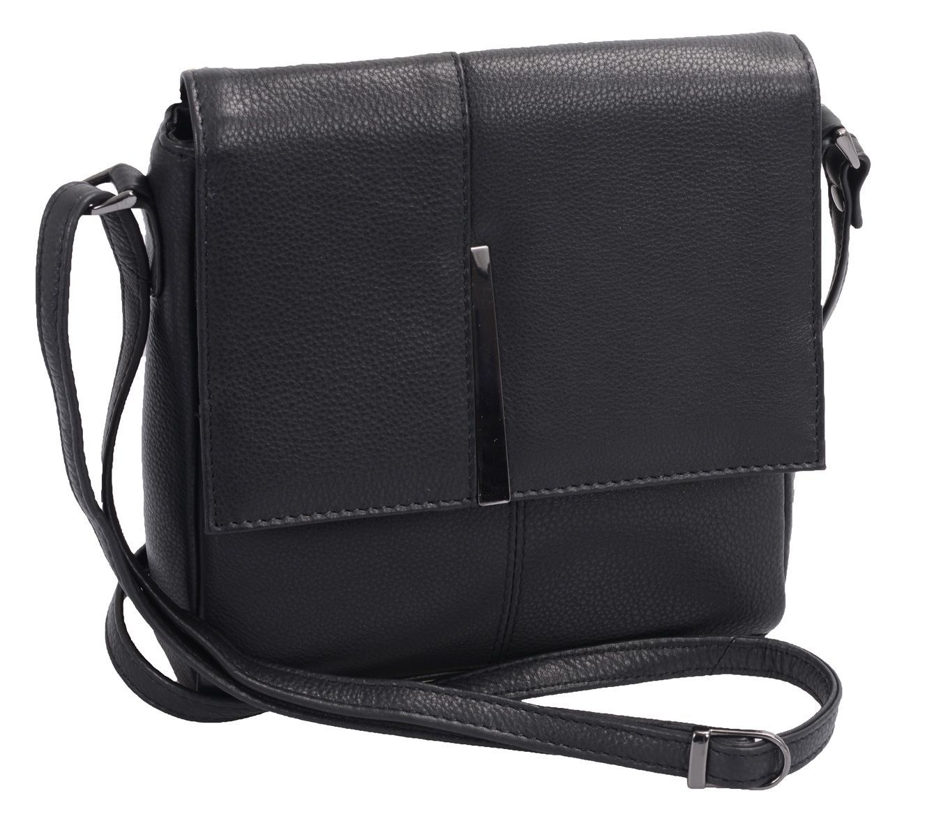 kleine schwarze Ledertasche mit langem Henkel