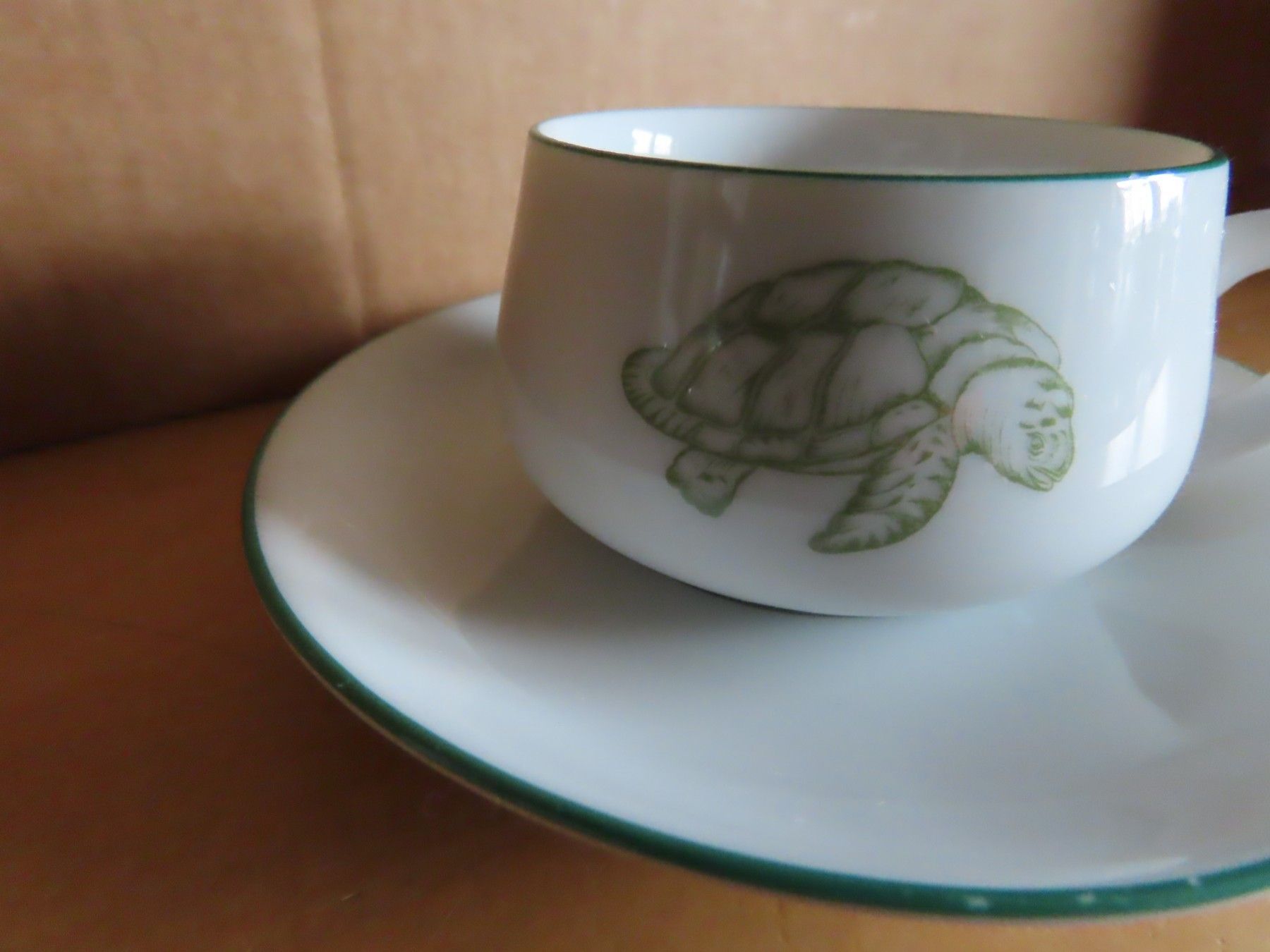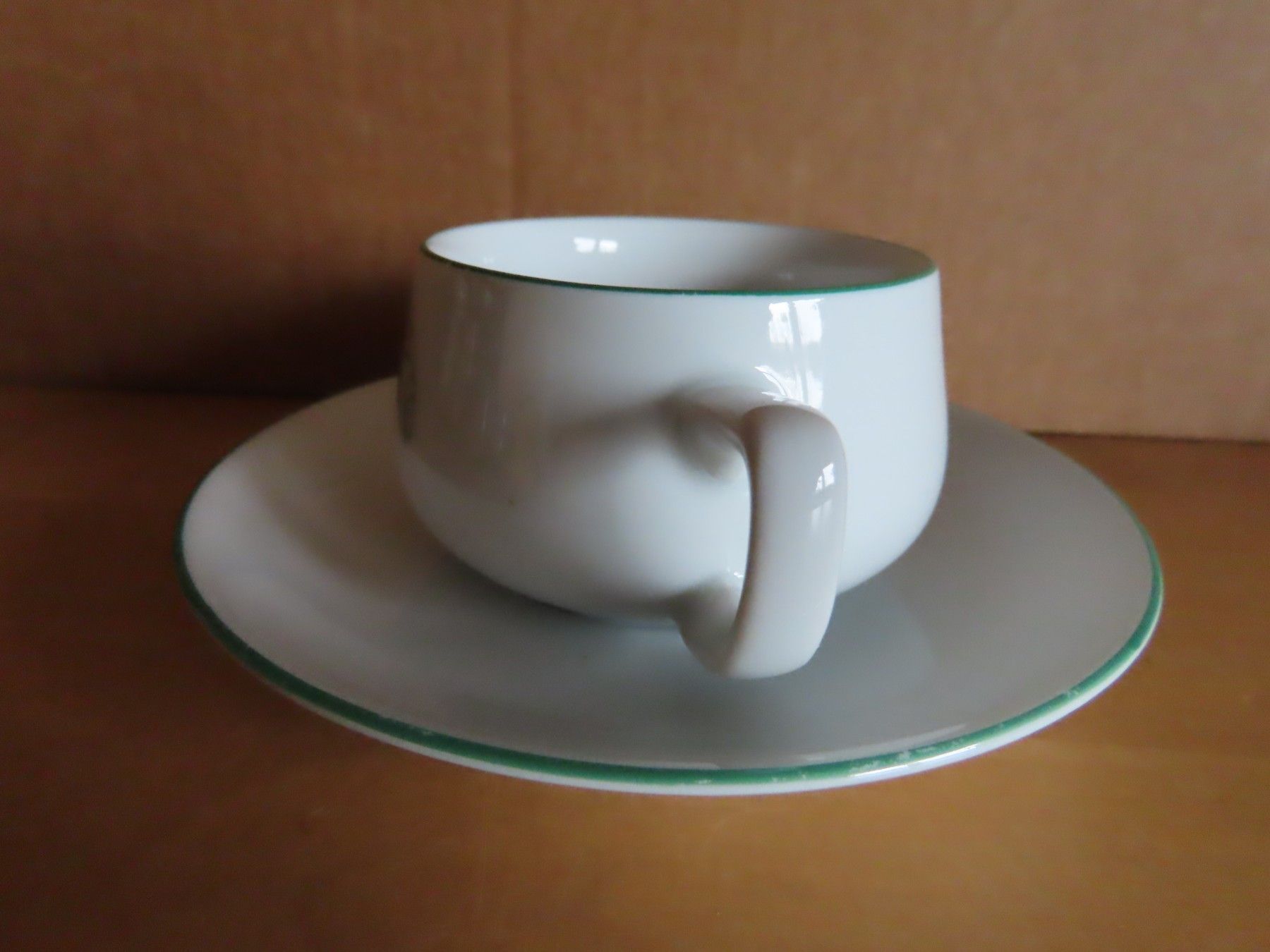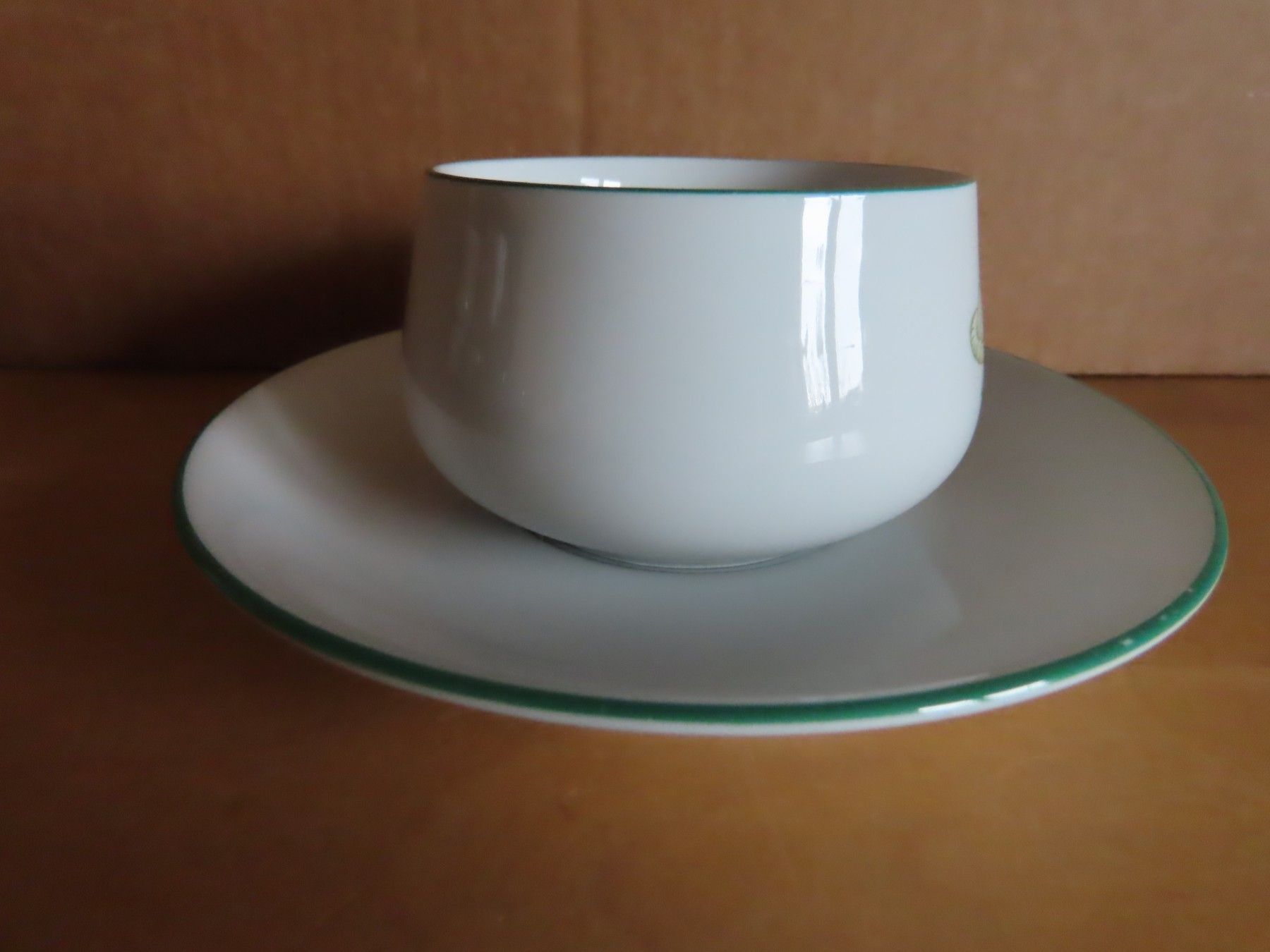 Maße Tasse: ca. 4,4 cm hoch x 7,5 cm Durchmesser --an der breiteste Stelle gemessen Innenmaß am oberen Rand gemessen 6 cm Durchmesser Untertasse ist ca. 12,7 cm Material: Porzellan oder Keramik bin mir nicht sicher ist leicht verschmutzt und hat an manchen Stellen am Rand Farbabrieb... Mehr