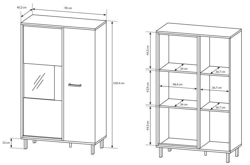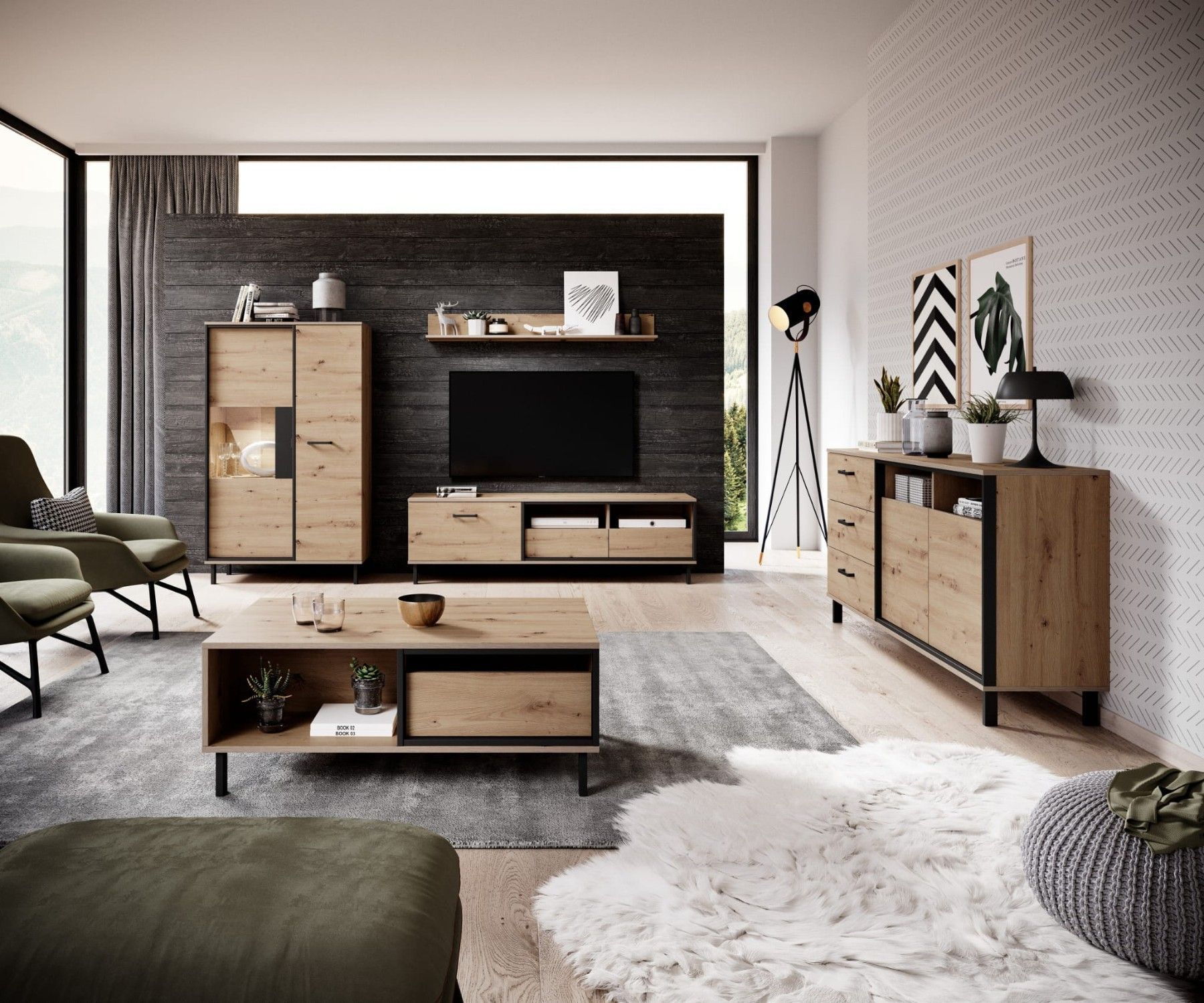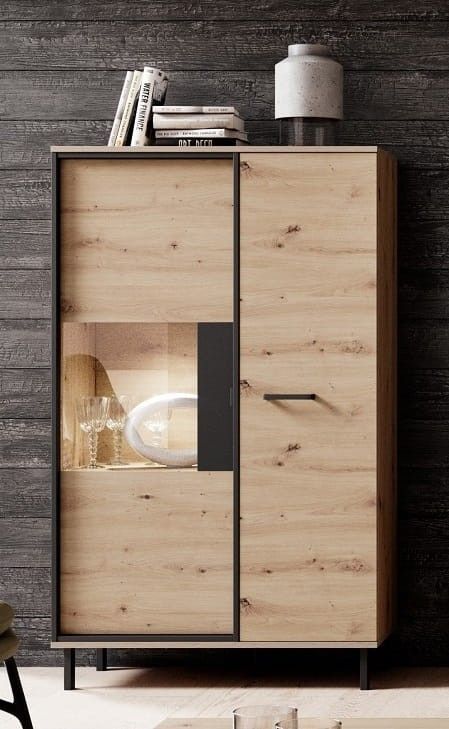 017666076782 Kleine Vitrine - NAST SPEZIFIKATION Ma ße: Breite: 90 cm Höhe: 150,4 cm Tiefe: 40,2 cm Farbe: Artisan Eiche + Anthrazit Schwarz Produktbeschreibung Loft und modisches Möbelsystem NAST. Die Korpusse des NAST-Systems sind aus 16 mm laminierter Platte in den Farben E