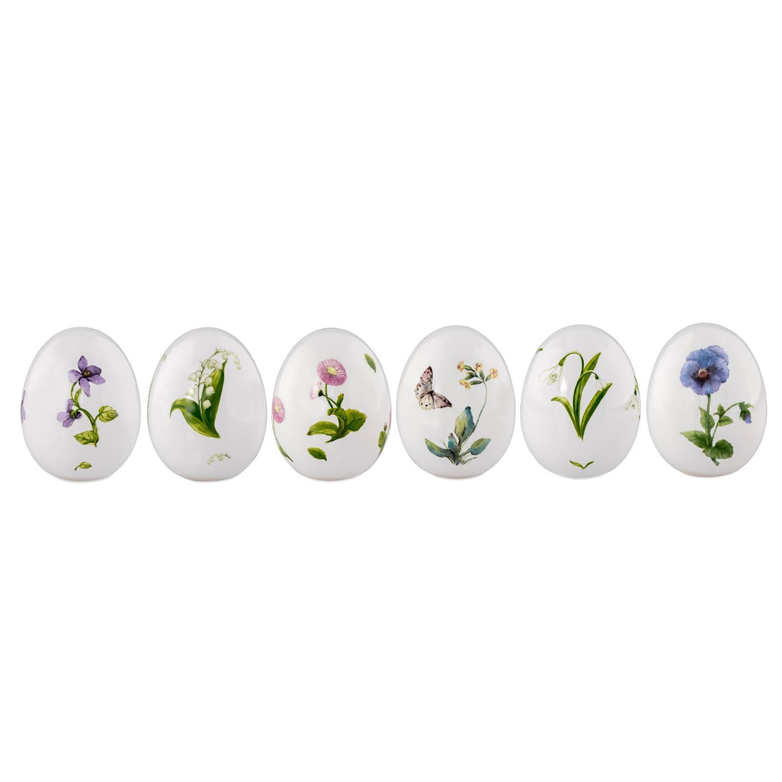 kleine weiße Porzellan Deko Eier mit Blumen 7.2 cm hoch 6-teilig