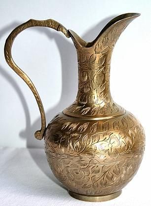 kleiner älterer indischer Messing Krug mit Ornamenten