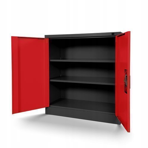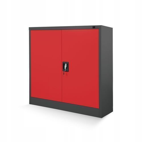 Kleiner Aktenschran Büroschrank mit Flügeltüren 93 x 90 x 40 cm Anthrazit/Rot