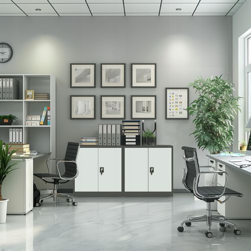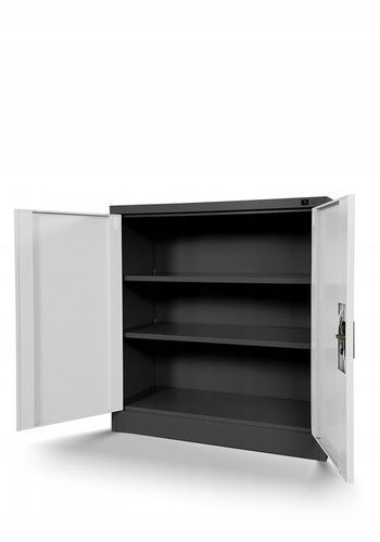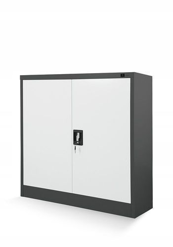 Kleiner Aktenschran Büroschrank mit Flügeltüren 93 x 90 x 40 cm Anthrazit/weiß