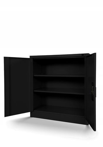 Kleiner Aktenschran Büroschrank mit Flügeltüren 93 x 90 x 40 cm Schwarz