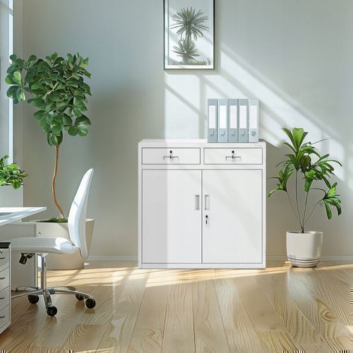 Kleiner Aktenschrank Büroschrank mit 2 Schubladen 90 cm x 90 cm x 40 cm Grau