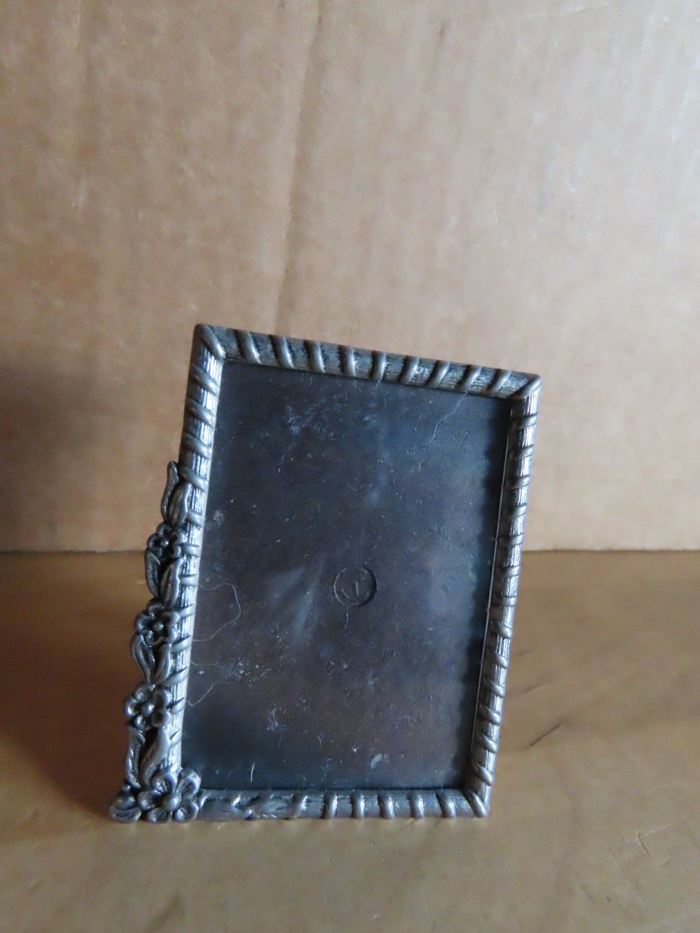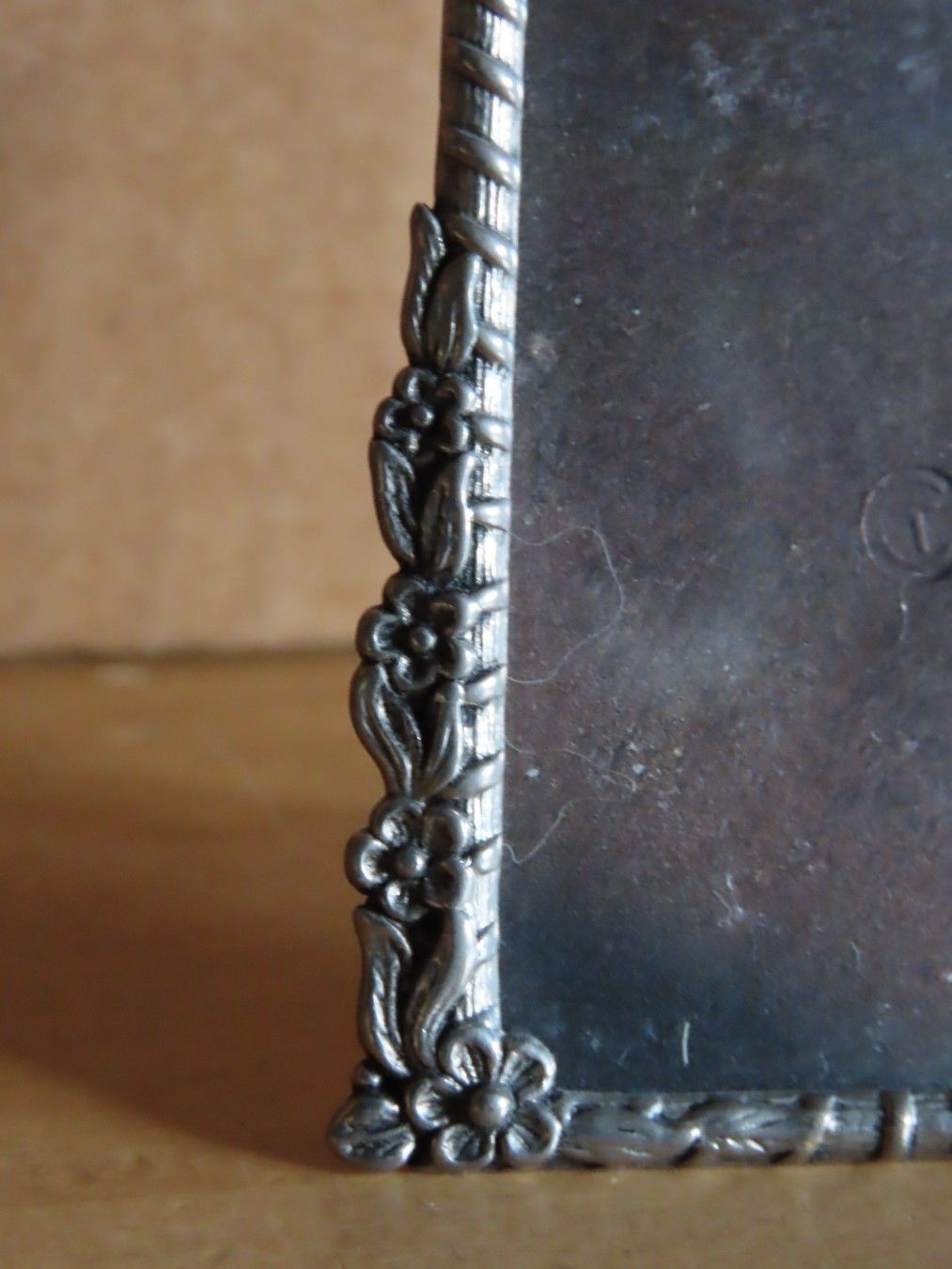 kleiner Bilderrahmen silberfarben mit kleinen Blumen am Rand (Passbild)