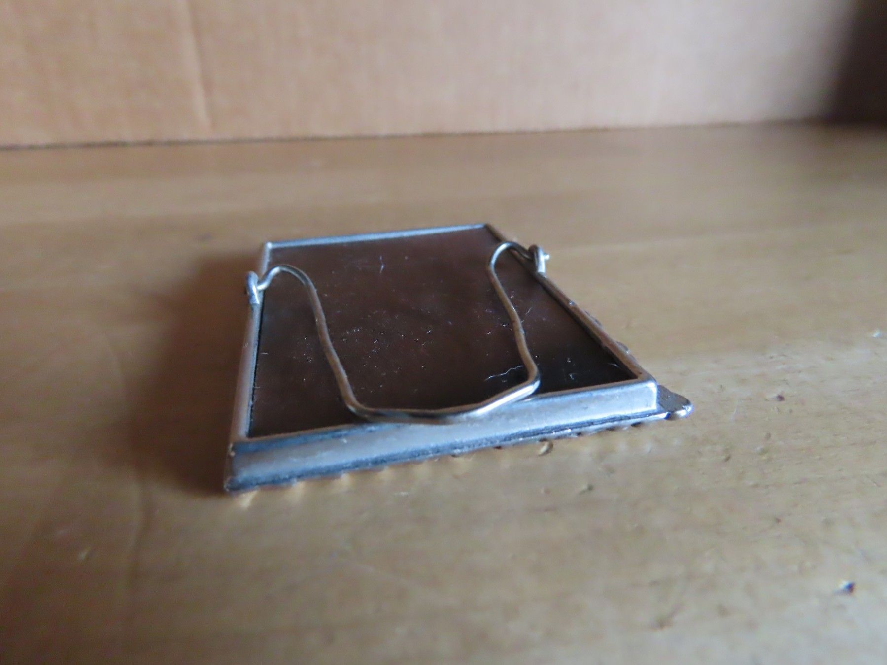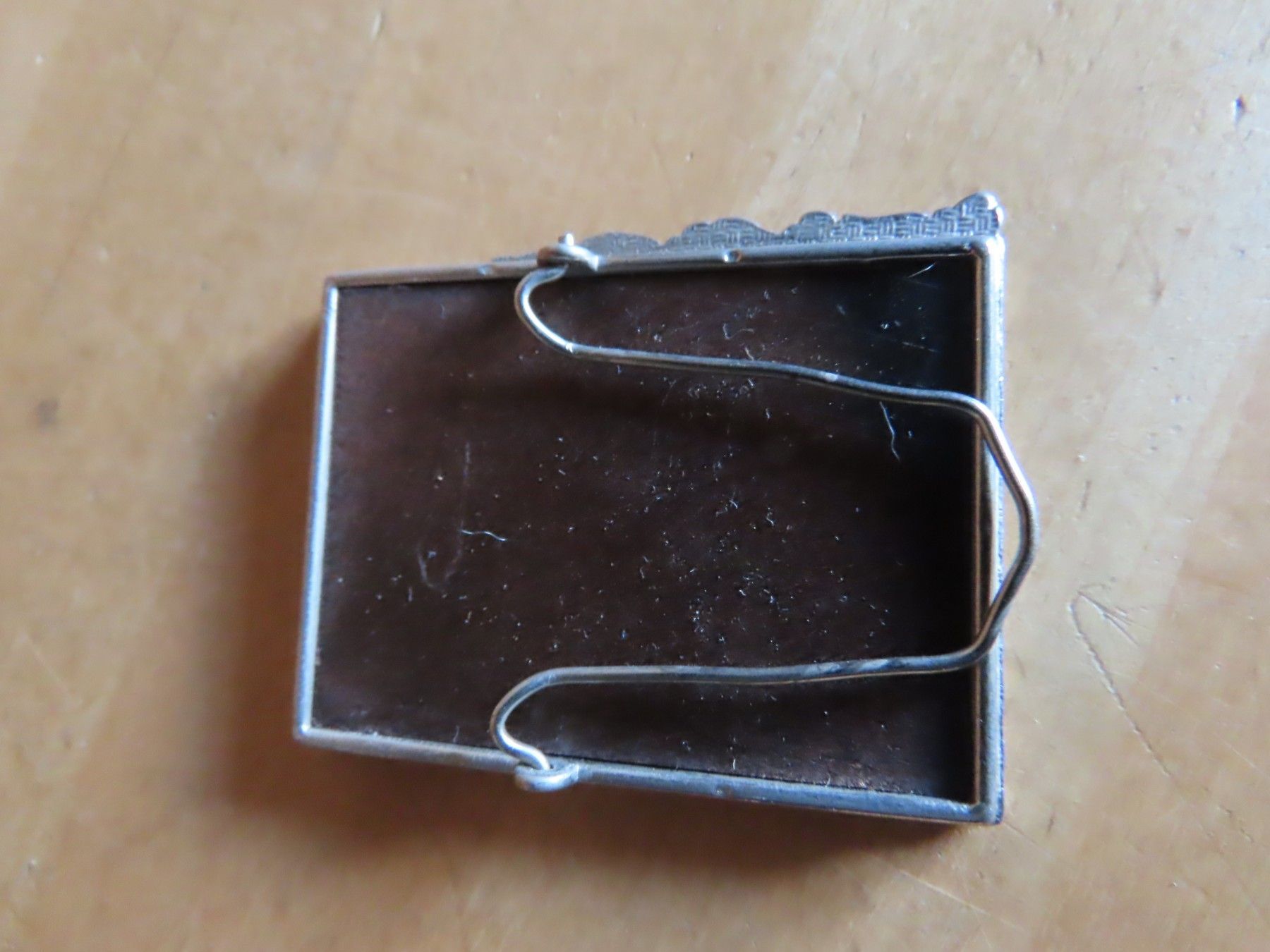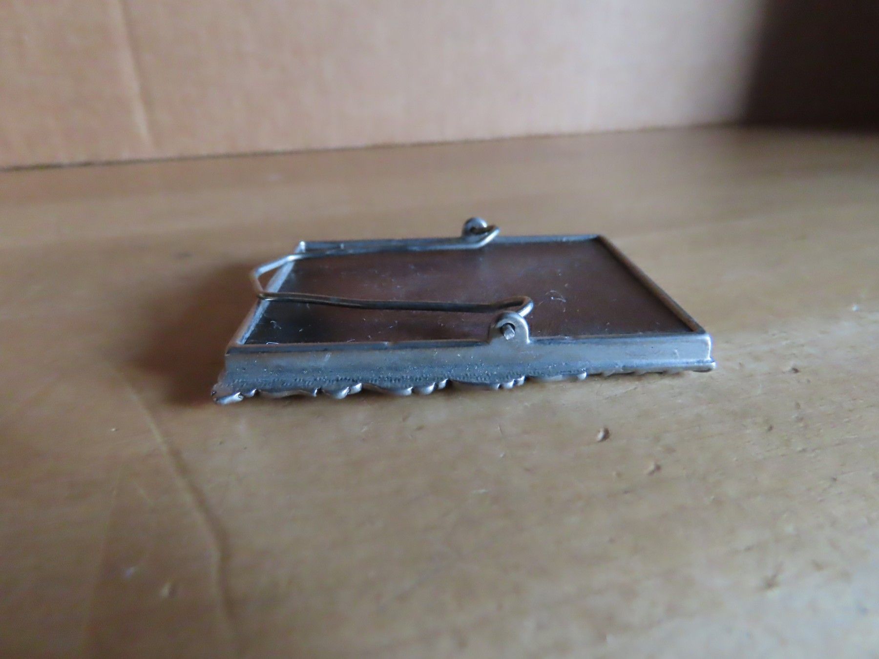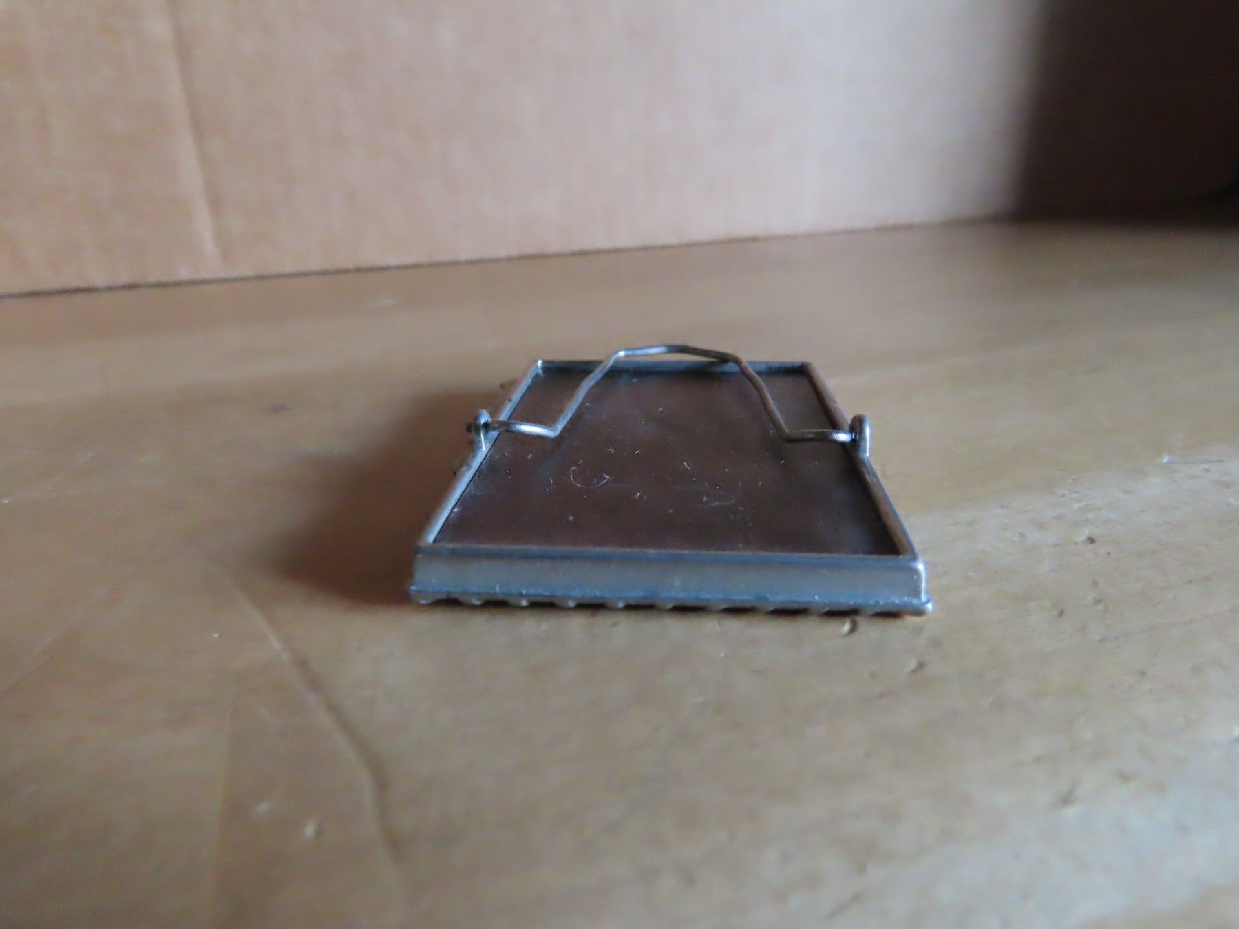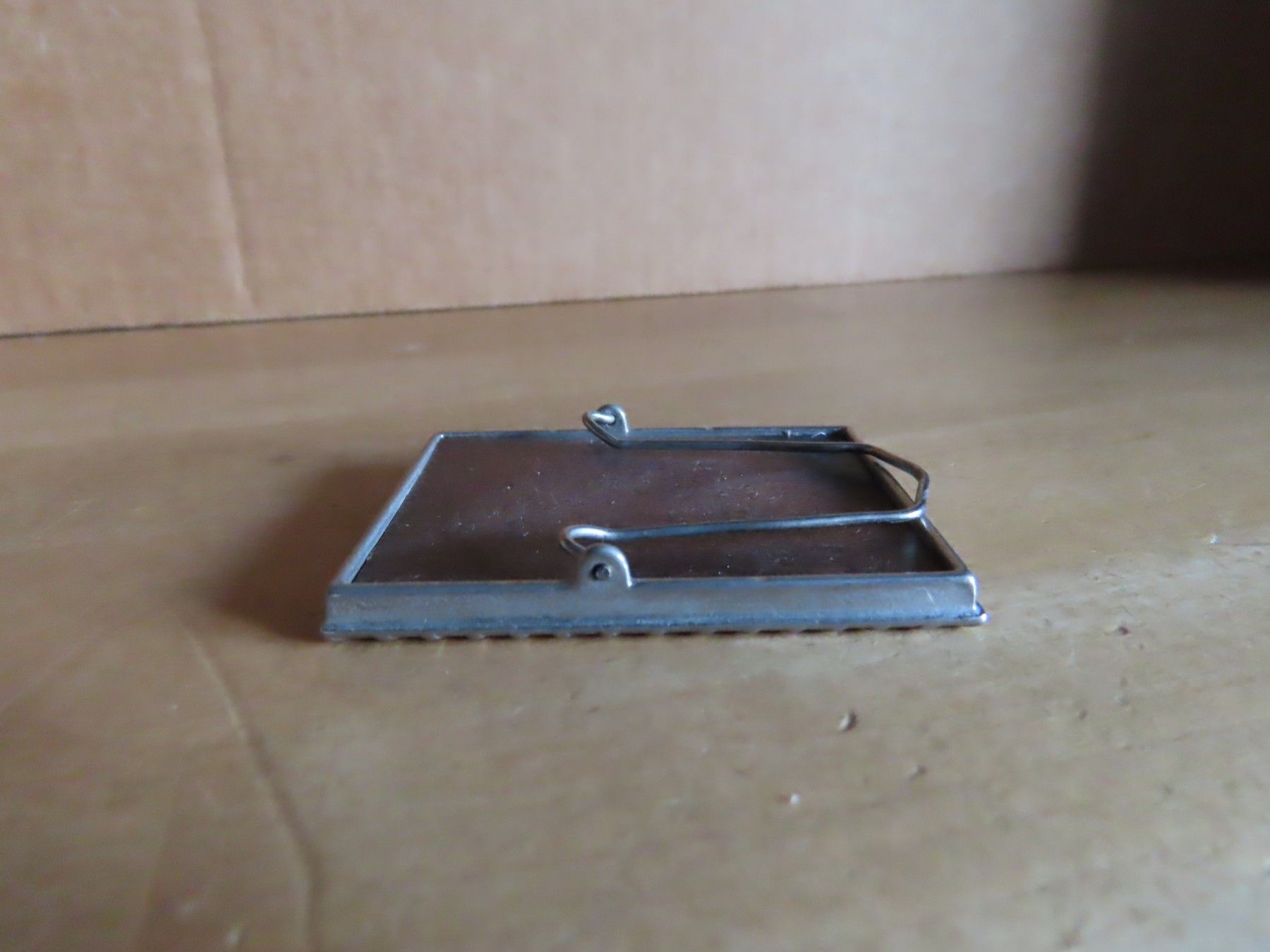 Maße: ca. 5,4 cm 4,4 cm x ca. 0,5 cm innen ca. 4,7 cm x ca. 3,5 cm Material: Metall NICHT magnetisch + Kunststoff ist leicht verschmutzt *verstaubt