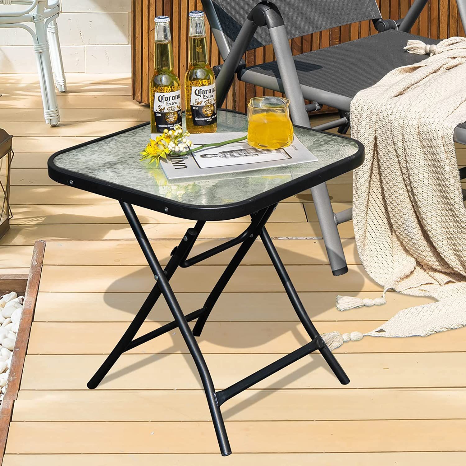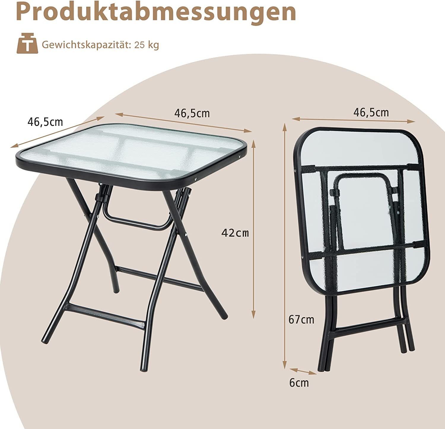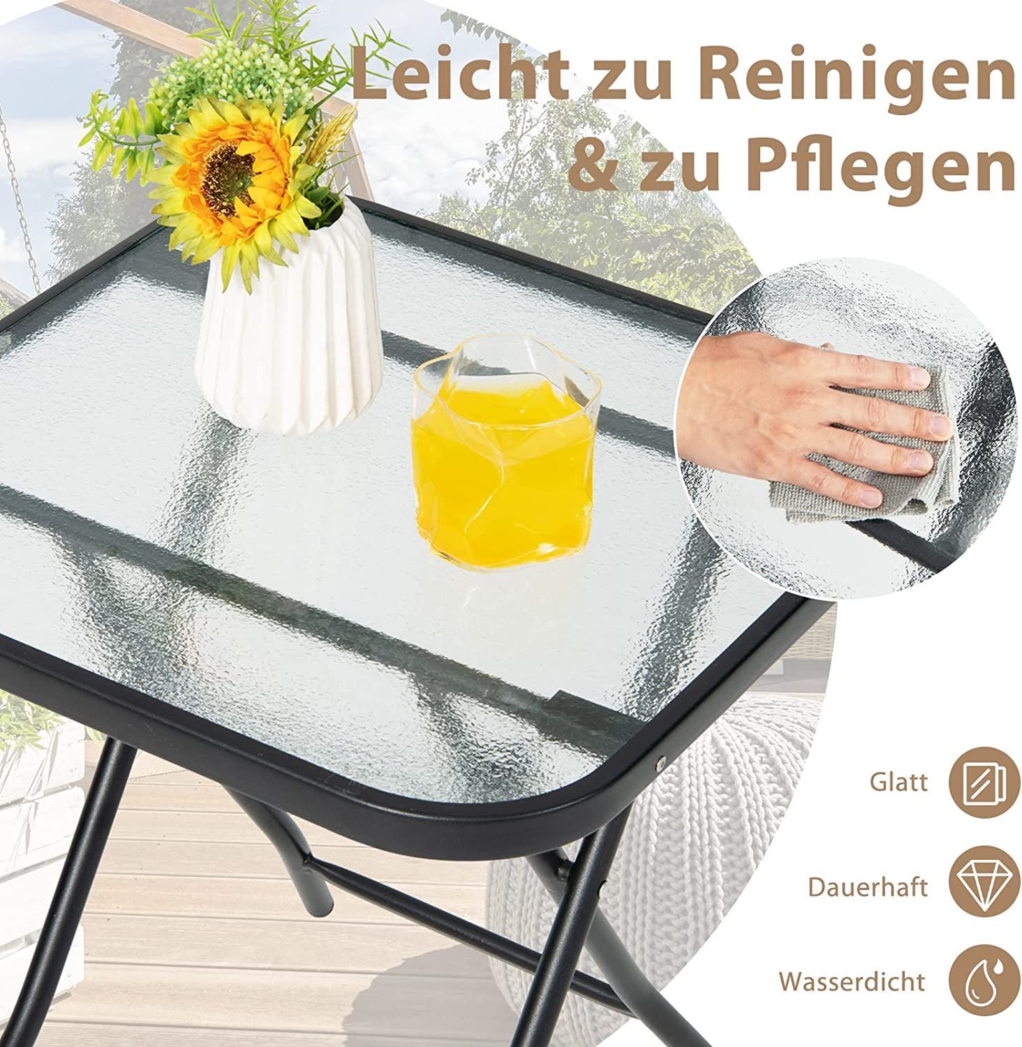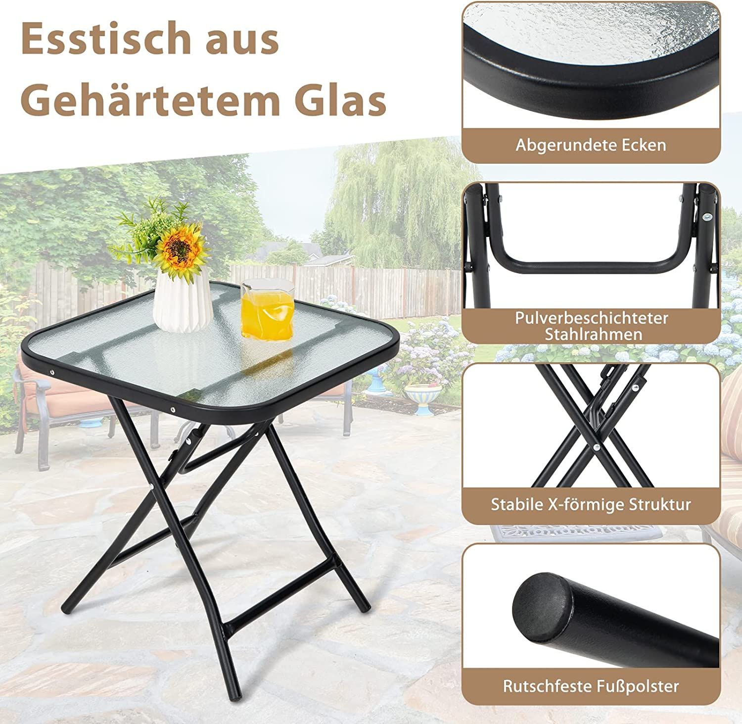 Kleiner Bistrotisch, klappbarer Beistelltisch, quadratischer Gartentisch für Terrasse