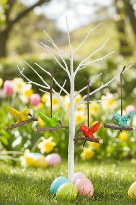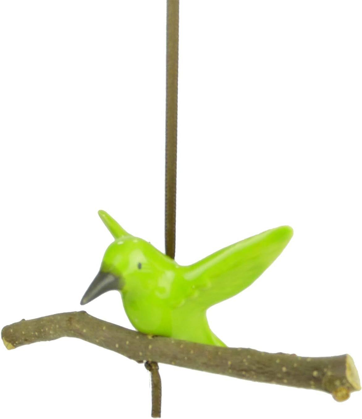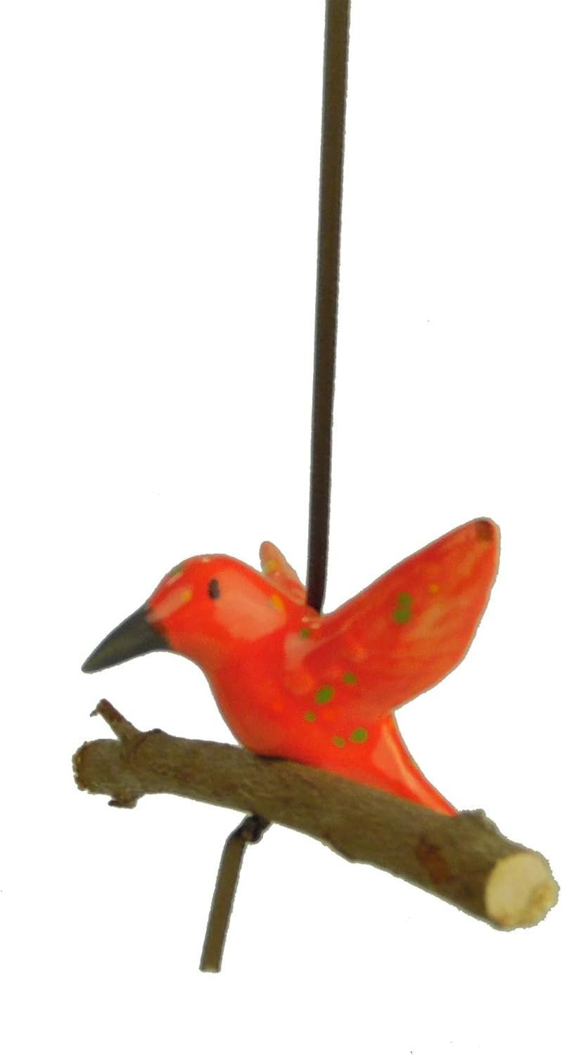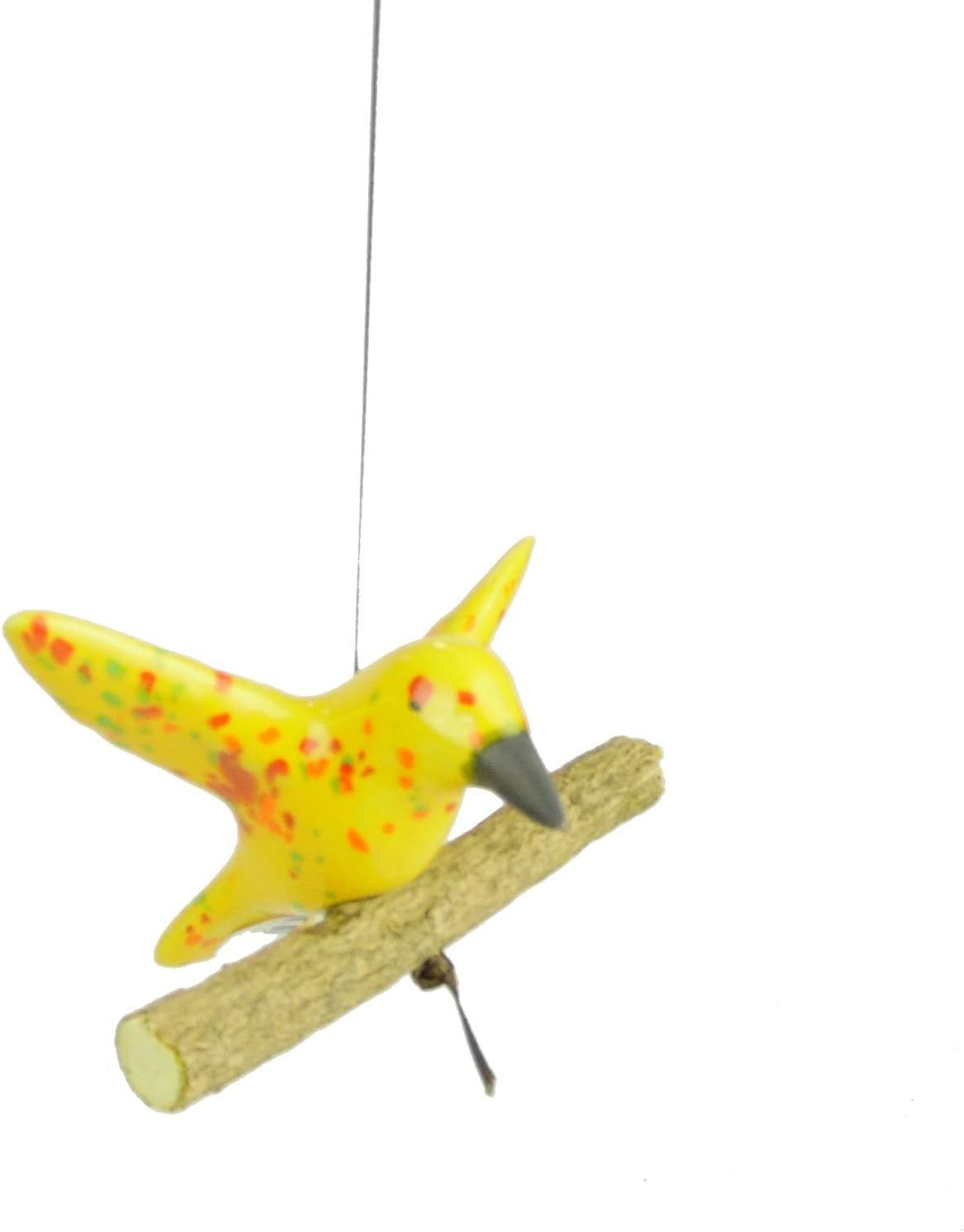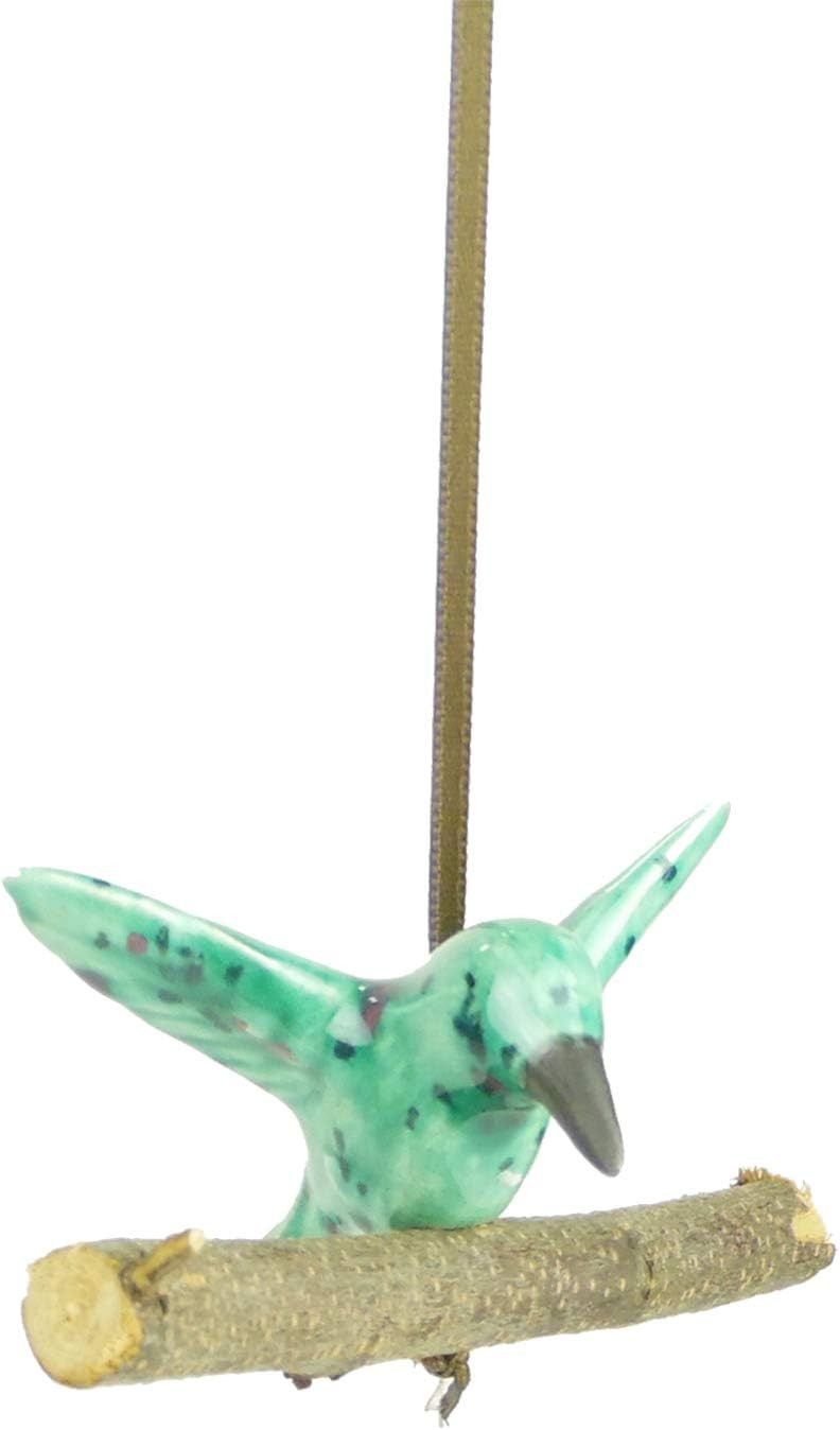 Kleiner fliegender Keramik-Vogel auf Holzast - zum Aufhängen mit Band