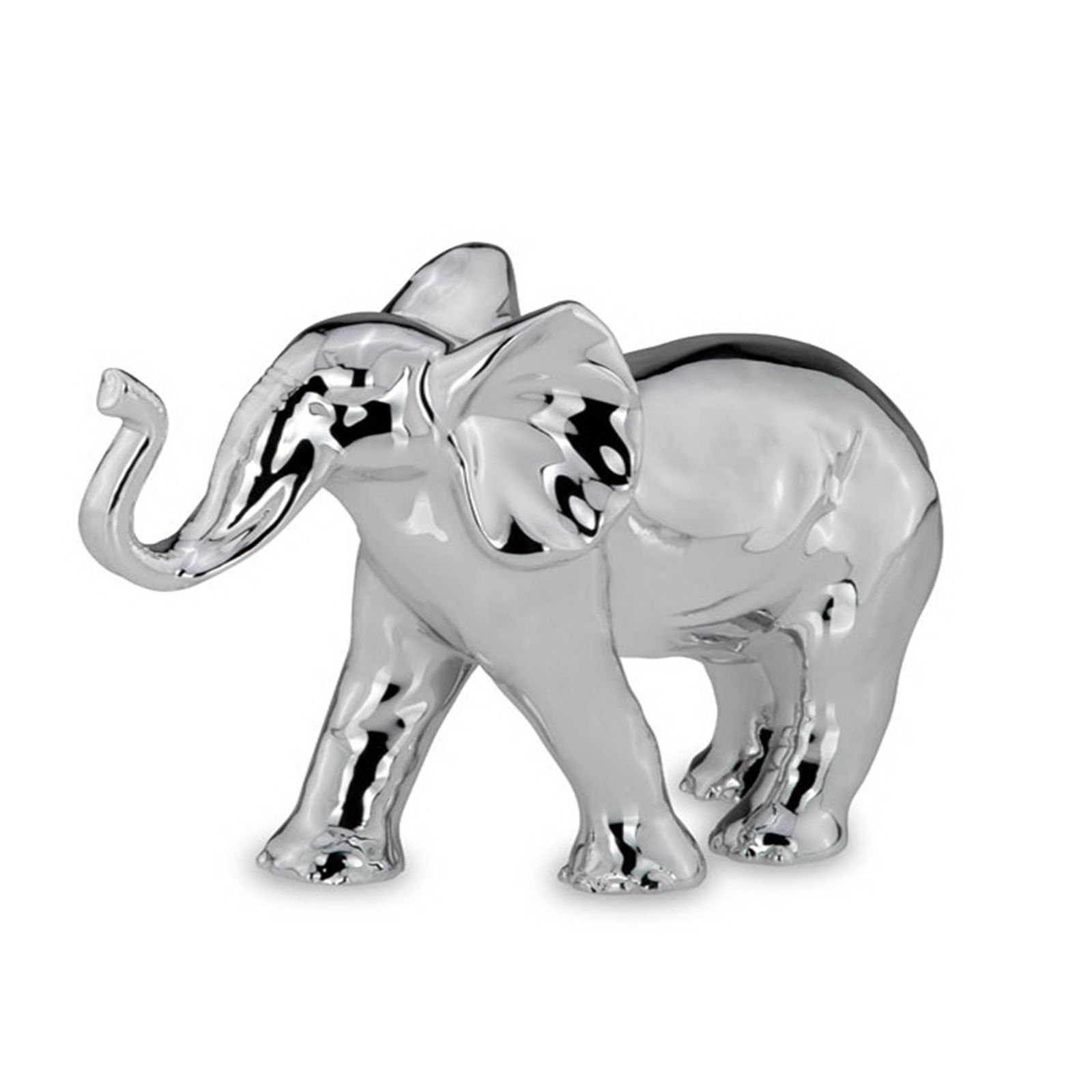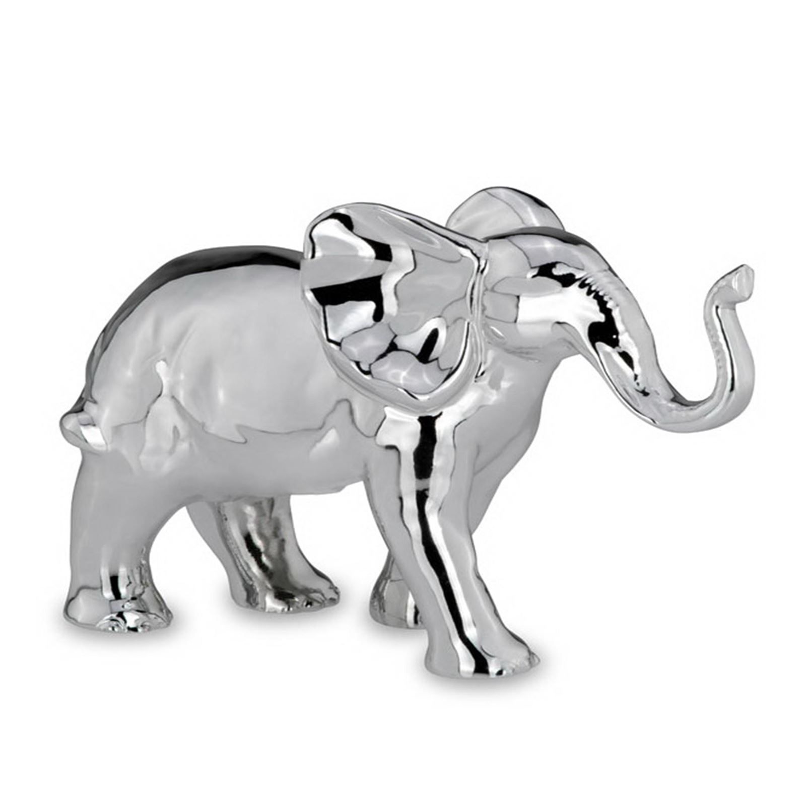 kleiner silberglänzender Porzellan Deko Elefant 17 cm