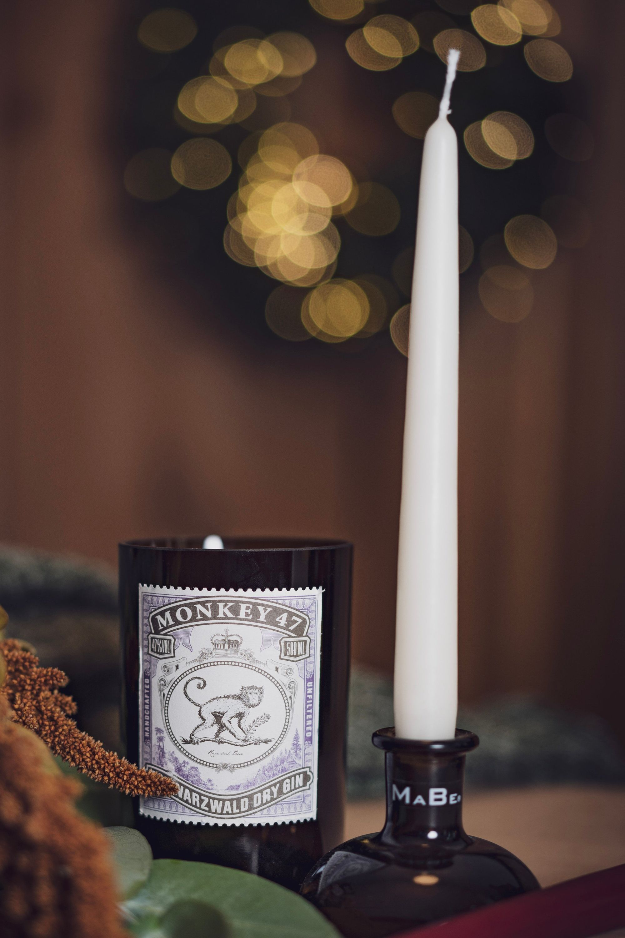 Kleiner witziger Kerzenständer aus der leeren Gin Flasche