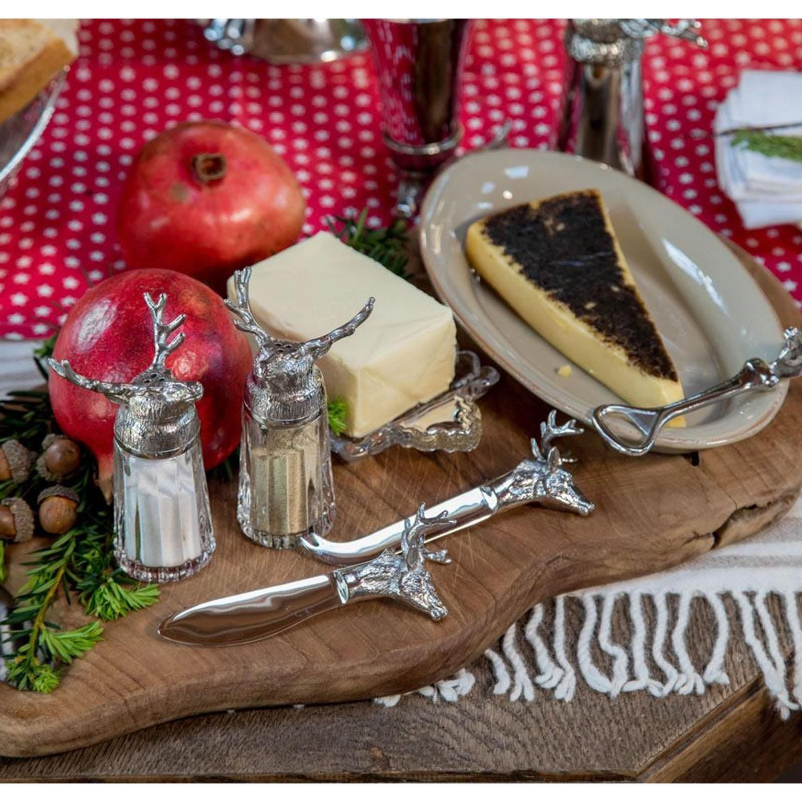kleines glänzendes Edelstahl Buttermesser 13 cm Motiv Hirsch