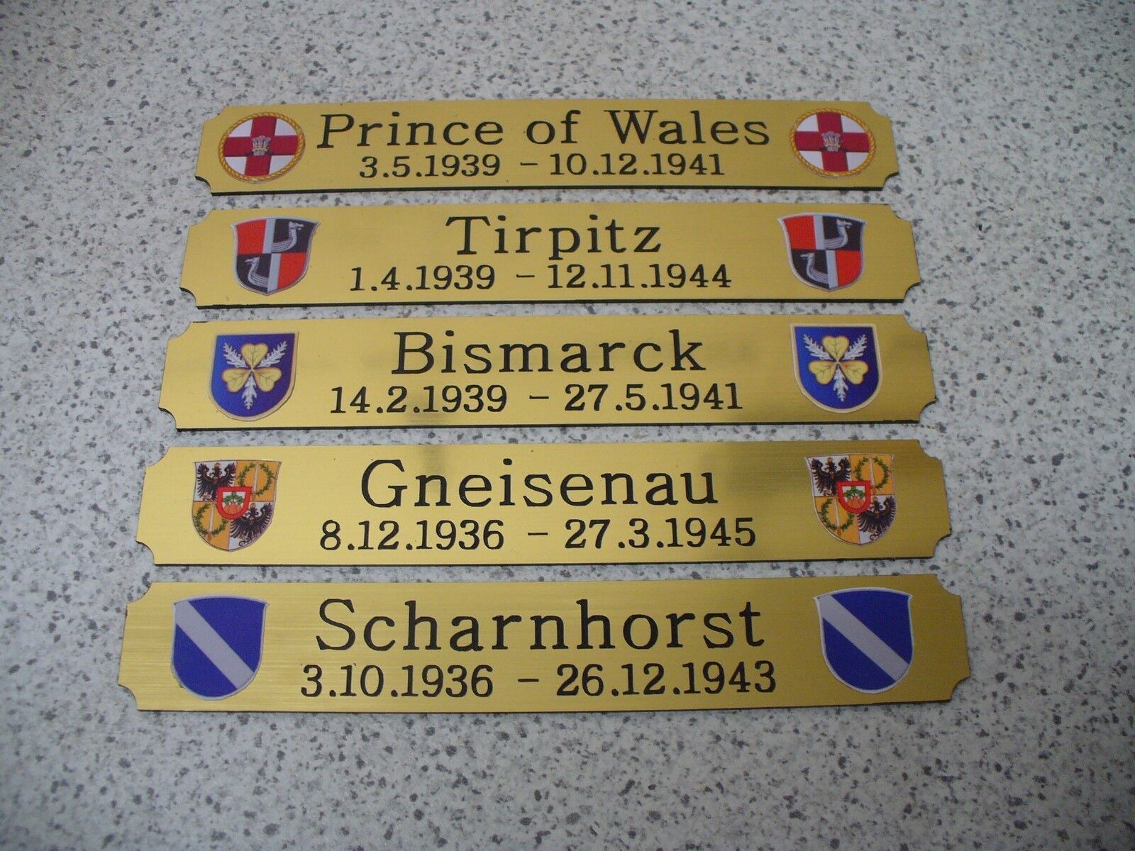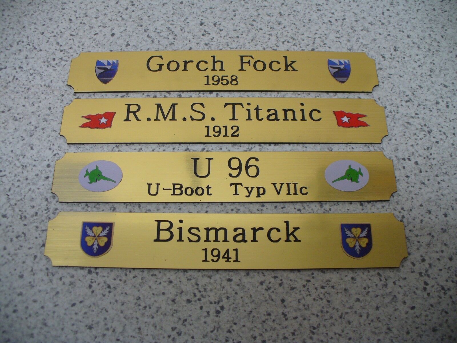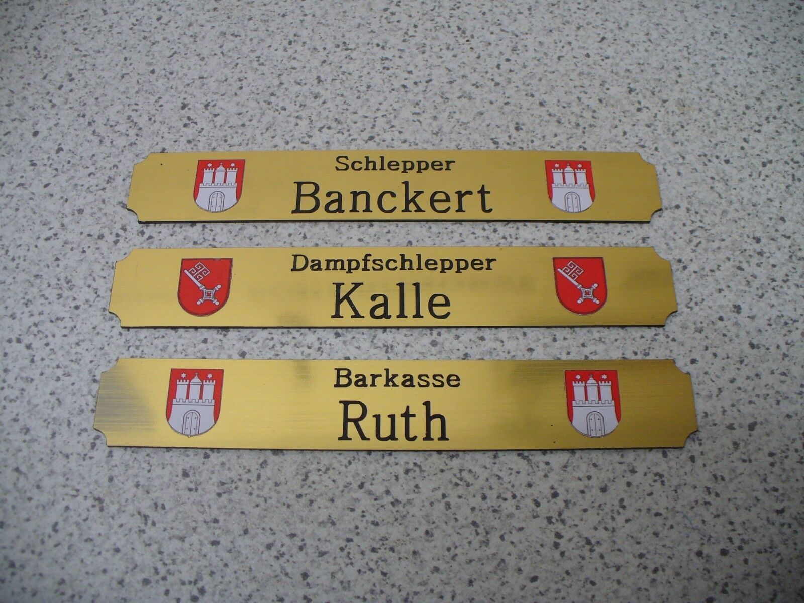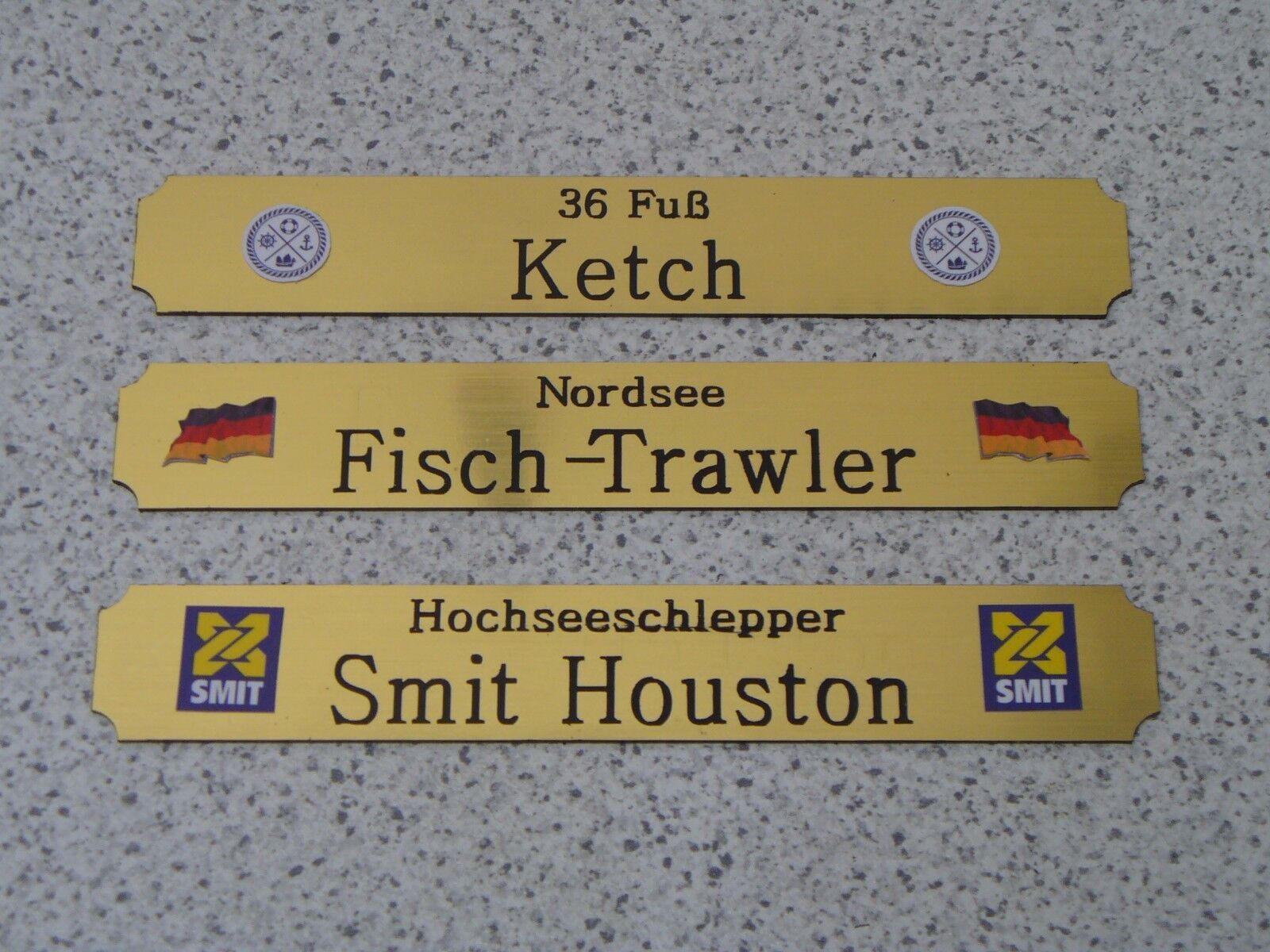 Sie bieten hier auf: 1 Kleines Namensschild - Moderne Schiffe nach Wahl - Bitte geben Sie nach dem Kauf an, welches Schild Sie möchten (siehe auch Liste der bisher angefertigten Schilder ganz unten) Sollte Ihr Wunschschild hier nicht dabei sein, melden Sie sich gerne bei mir mit farbigem Schiffswapp