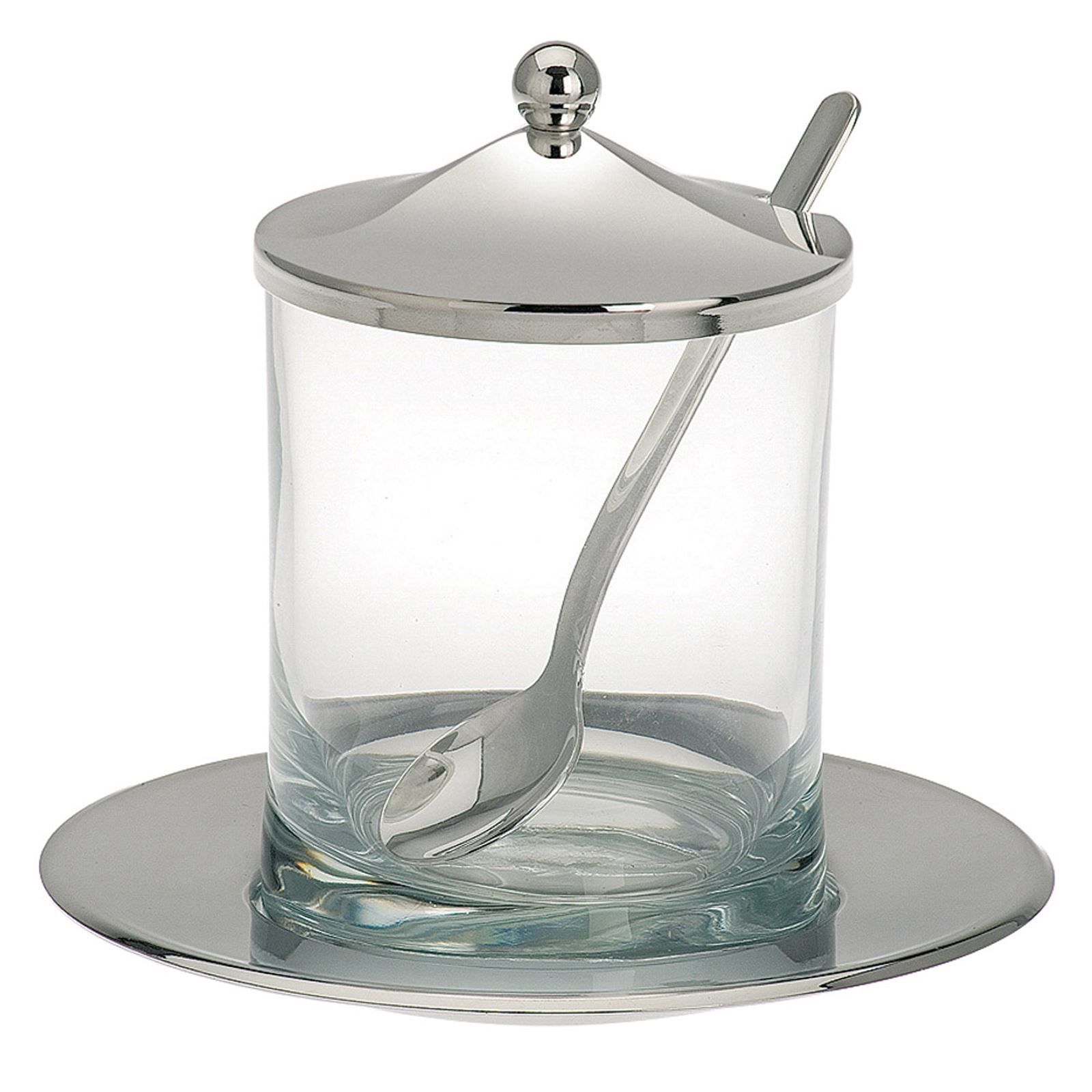 kleines rundes versilbertes Marmeladenglas Ø 8 cm mit Löffel